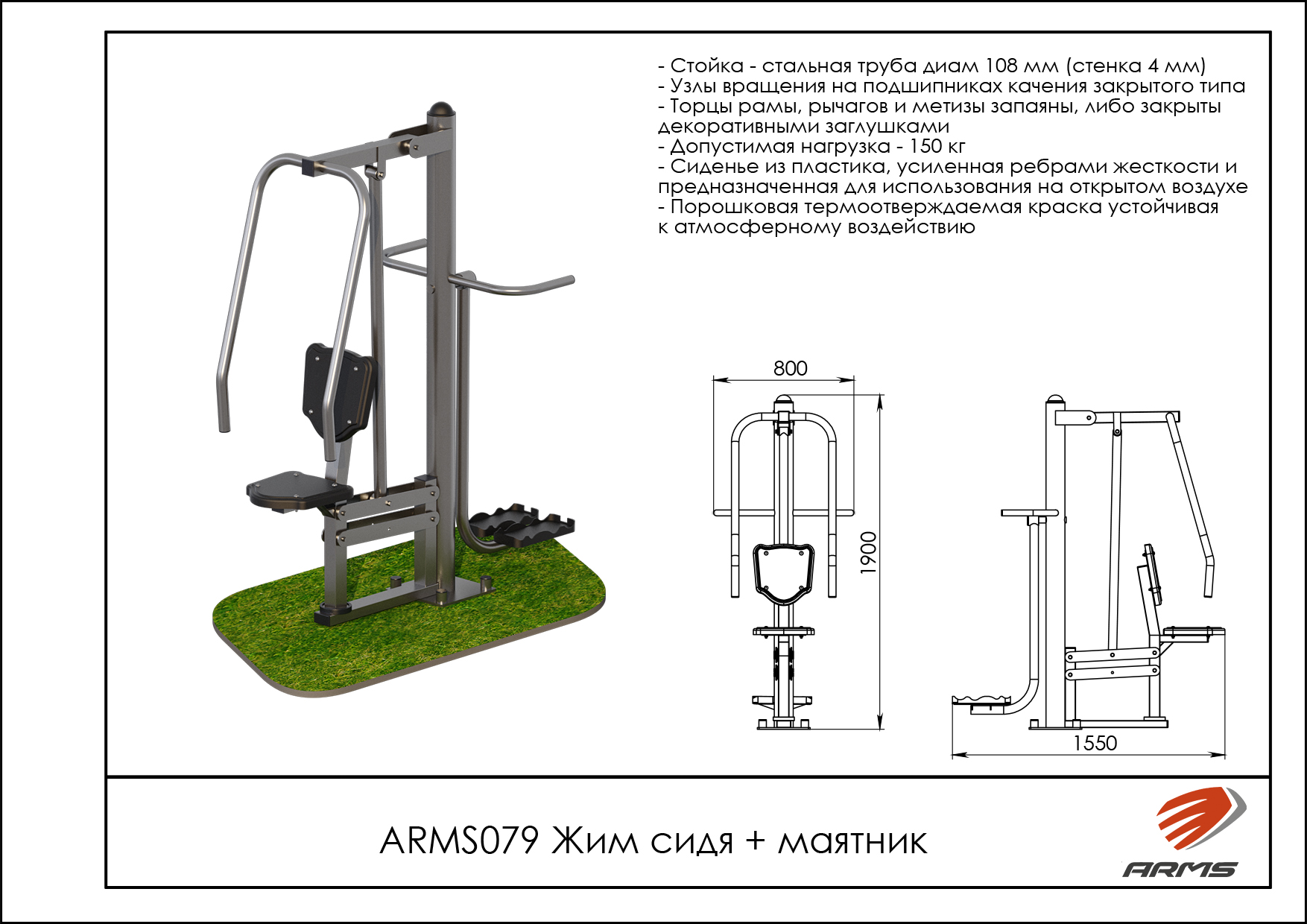 Уличный тренажер Качалка-балансир ZAVODSPORTA* предназначен для установки на уличных спортивных площадках с учетом интенсивной эксплуатации в разных климатических условиях. Основание