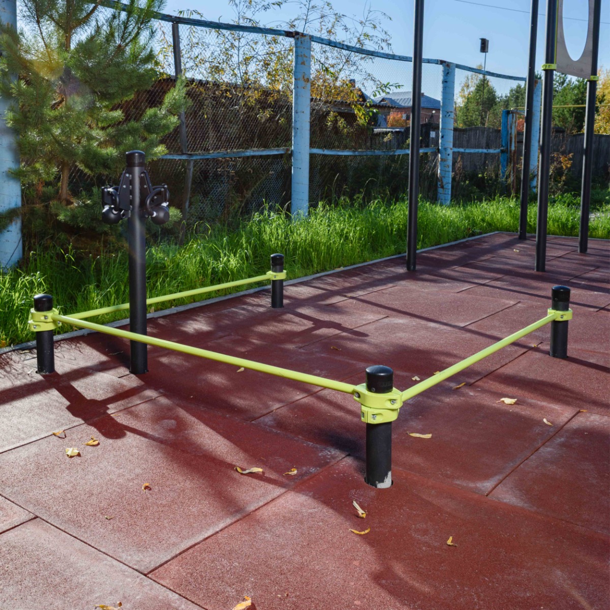 Комплектующий элемент серии уличных тренажёров WORKOUT брусья разноуровневые ZAVODSPORTA* для создания индивидуального спортивного комплекса. Перекладины выполнены из металлической трубы диаметром