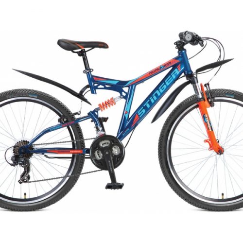 Велосипед Stinger 26″ highlender 100v синий 18ск, р.16″ (2-х подвес)