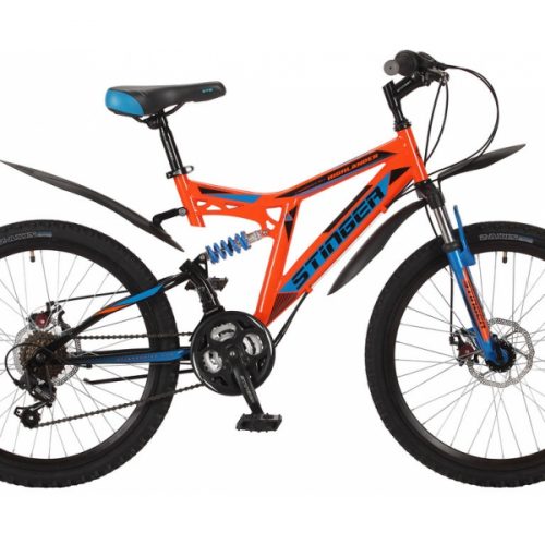 Велосипед Stinger 24″ highlender 100d оранжевый 18ск, р.14″ (2-х подвес)