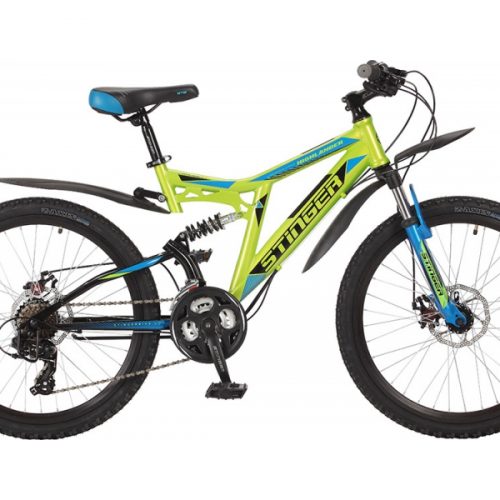 Велосипед Stinger 24″ highlender 200d зеленый, р.14″ (2-х подвес)