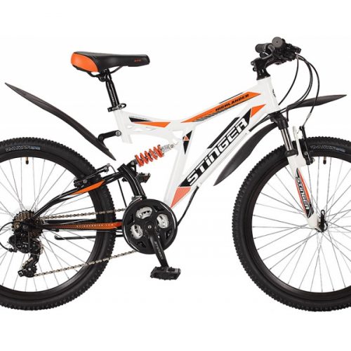 Велосипед Stinger 24″ highlender 200v белый 18ск, р.14″ (2-х подвес)