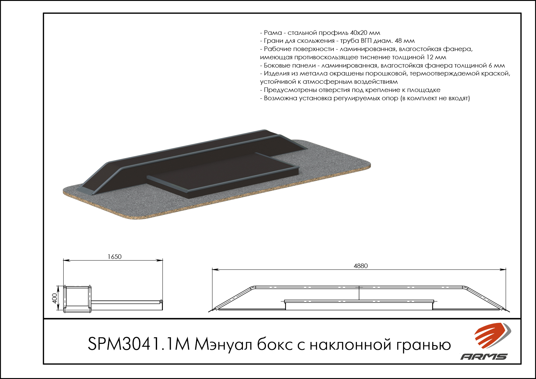 Предназначение: Мэнуал бокс можно использовать как самостоятельный элемент на площадке, так и как дополнительная приставка к другим элементам. Дополнительным элементом