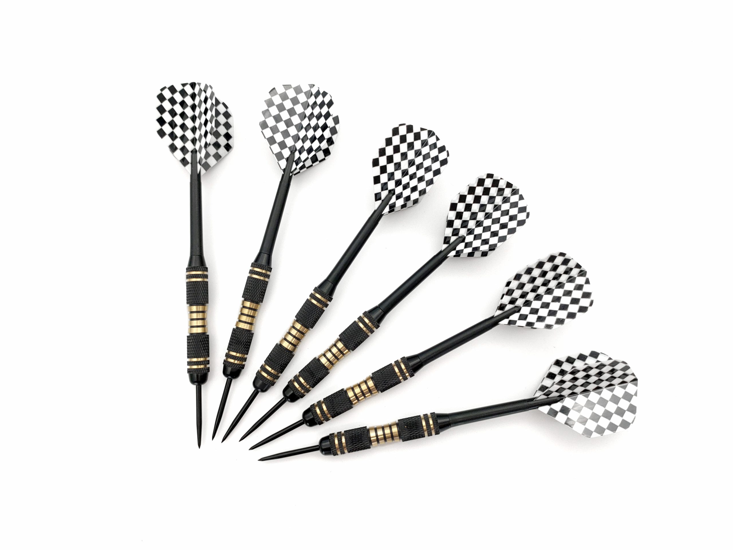 Набор дротиков для дартса DAR3324, состоящий из 6-ти дротиков с чёрно-белым узорчатым флайтом и металлическим держателем. Каждый дротик имеет вес