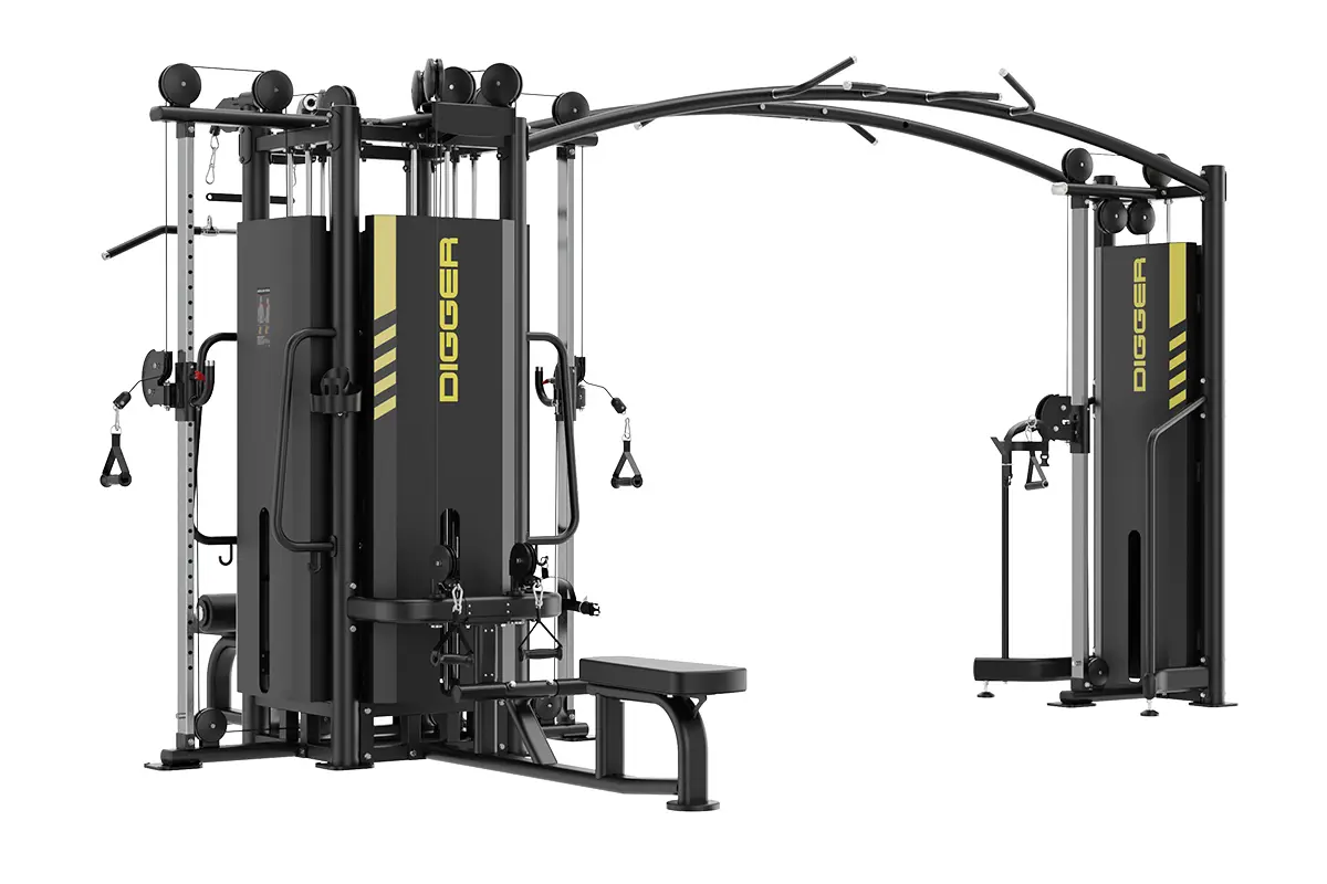Тренажер включает в себя станцию для тяги сверху, станцию для гребной тяги, станцию для жима ногами и две кабельные колонны, что позволяет одновременно заниматься на тренажере до пяти пользователей. Инженерные особенности конструкции многофункциональной блочной станции обеспечивают беспрецедентную биомеханику для максимально эффективных тренировок.