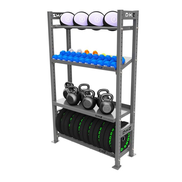 А0121 Стеллаж модульный DHZ 1100-1950 Модульные стеллажи – универсальное и простое решение по организации эффективного хранения оборудования в зале. Они отлично вписываются в интерьер любого кроссфит-зала.