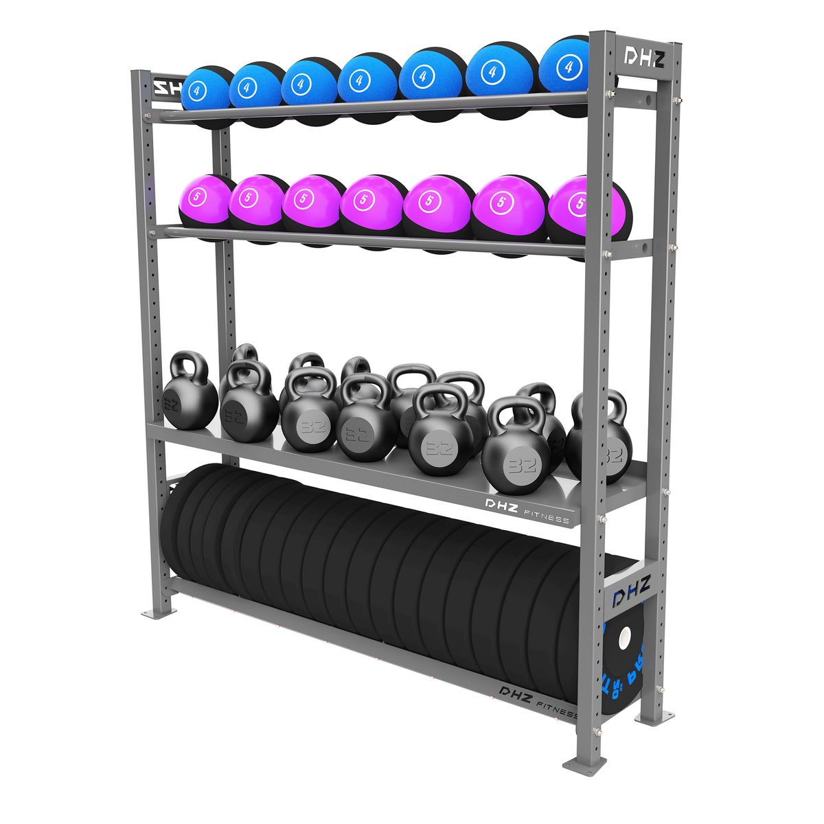 А0125 Стеллаж модульный DHZ 1800-1950 Модульные стеллажи – универсальное и простое решение по организации эффективного хранения оборудования в зале. Они отлично вписываются в интерьер любого кроссфит-зала