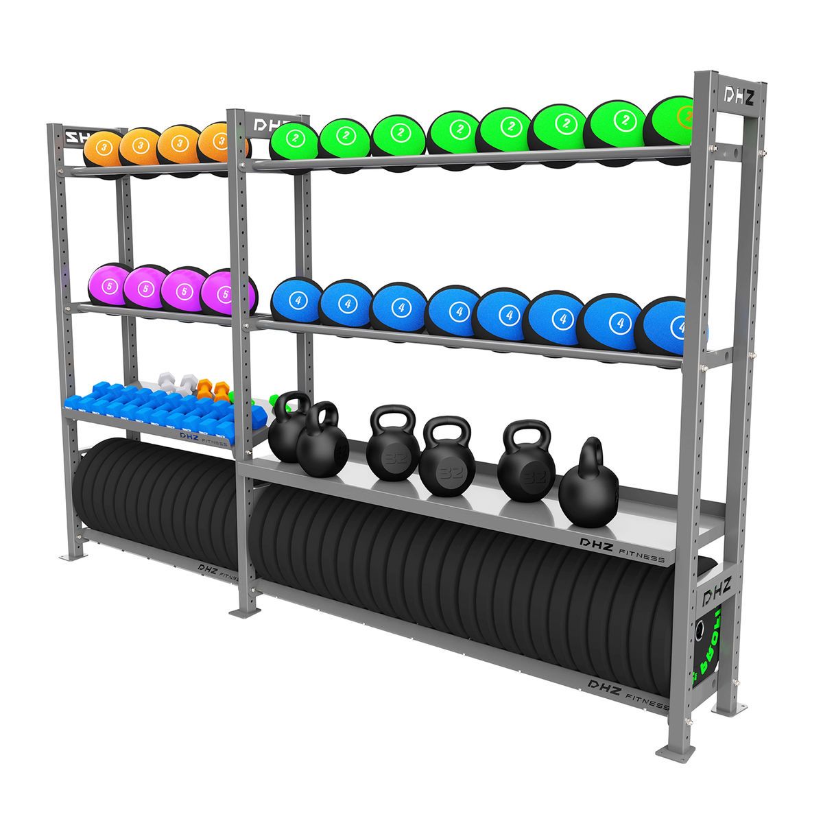А0130 Стеллаж модульный DHZ 2900-1950 Модульные стеллажи – универсальное и простое решение по организации эффективного хранения оборудования в зале. Они отлично вписываются в интерьер любого кроссфит-зала