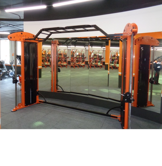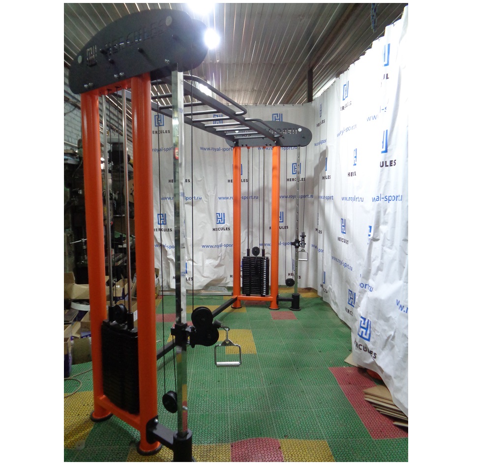 Усиленная сталь с полимерно-порошковой окраской. Основные материалы: Ф102мм, Ф42мм, Ф34мм, Ф27мм, Ф20 (нерж.сталь) профильная труба — 100х50мм, 80х40мм, 50х50мм, 40х40мм. Ролики из капролона 100х30мм тросы для спортивных тренажеров.