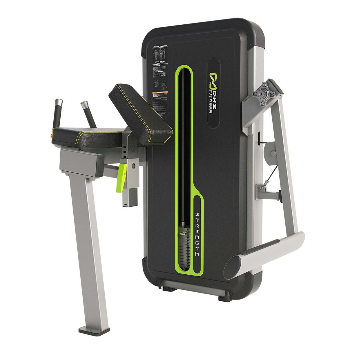 Качественный современный силовой тренажер для коммерческого использования. Для выполнения криволинейного движения на тренажере не требуется выравнивание положения бедер, а длинный рычаг обеспечивает полное участие ягодичной области. Подлокотники, рукоятки и большая опорная платформа стабилизируют положение пользователя во время выполнения упражнения.
