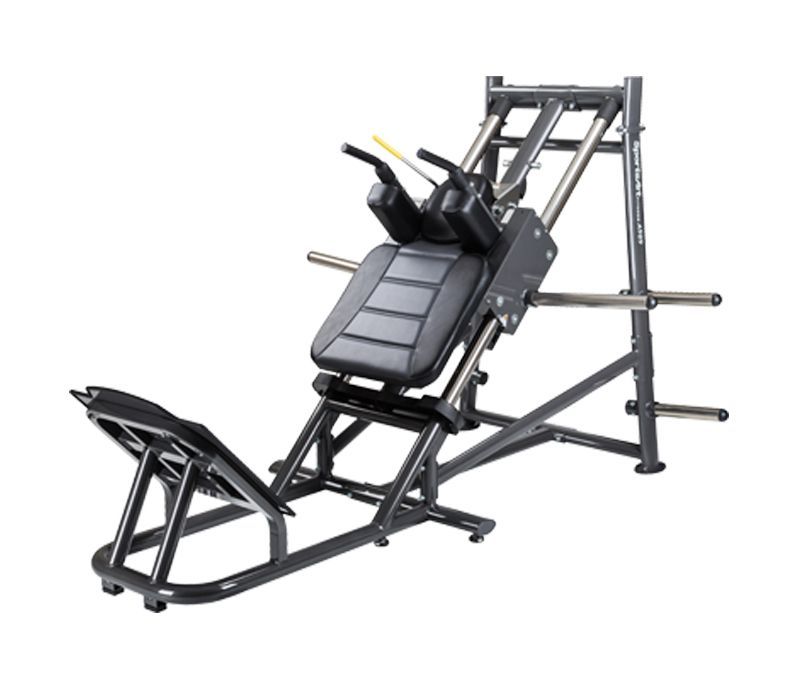 Гак-машина предназначена для тренировки мышц ног &ndash упражнение &laquoприседания в тренажере&raquo. Тренажер необходим для физической подготовки спортсменов различных видов спорта, очень эффективен для тренировки четырехглавой мышцы бедра — особенно внешней ее области.