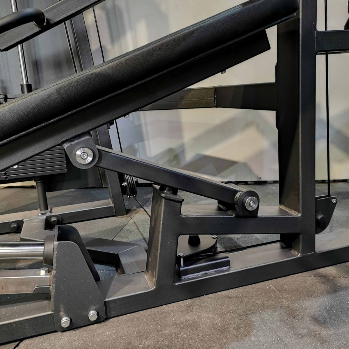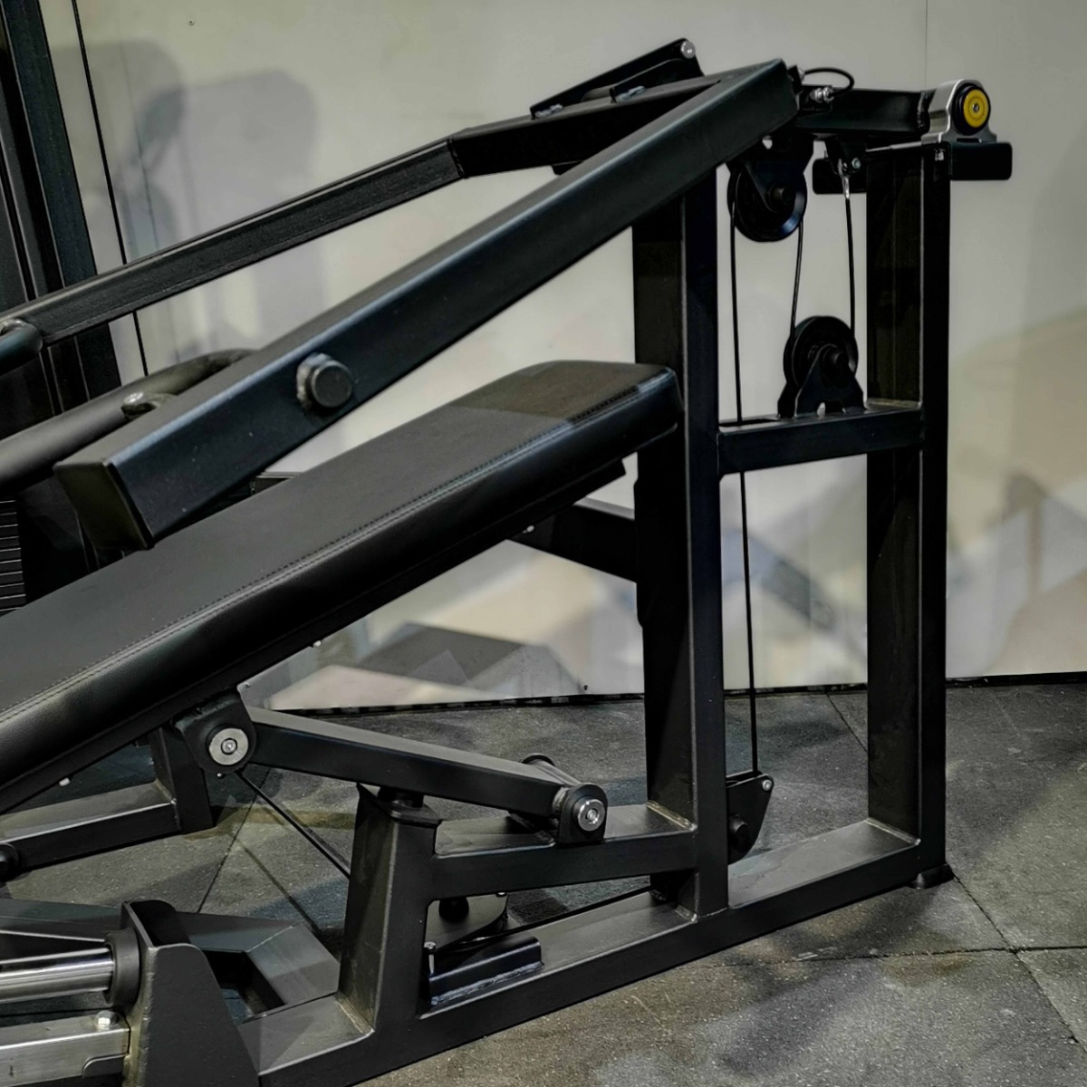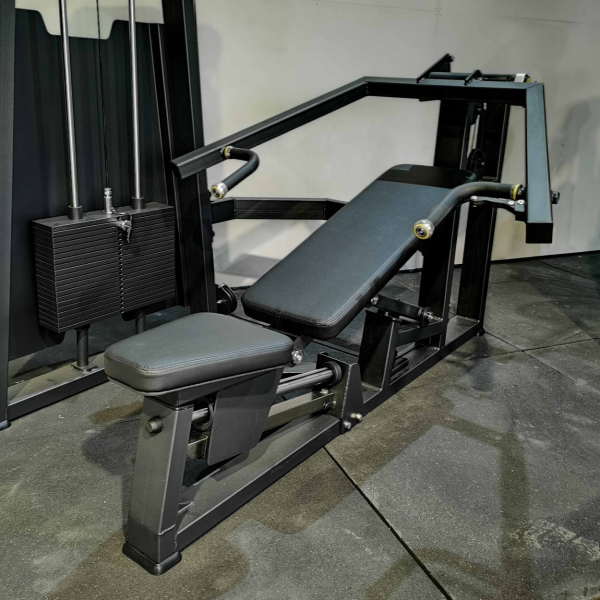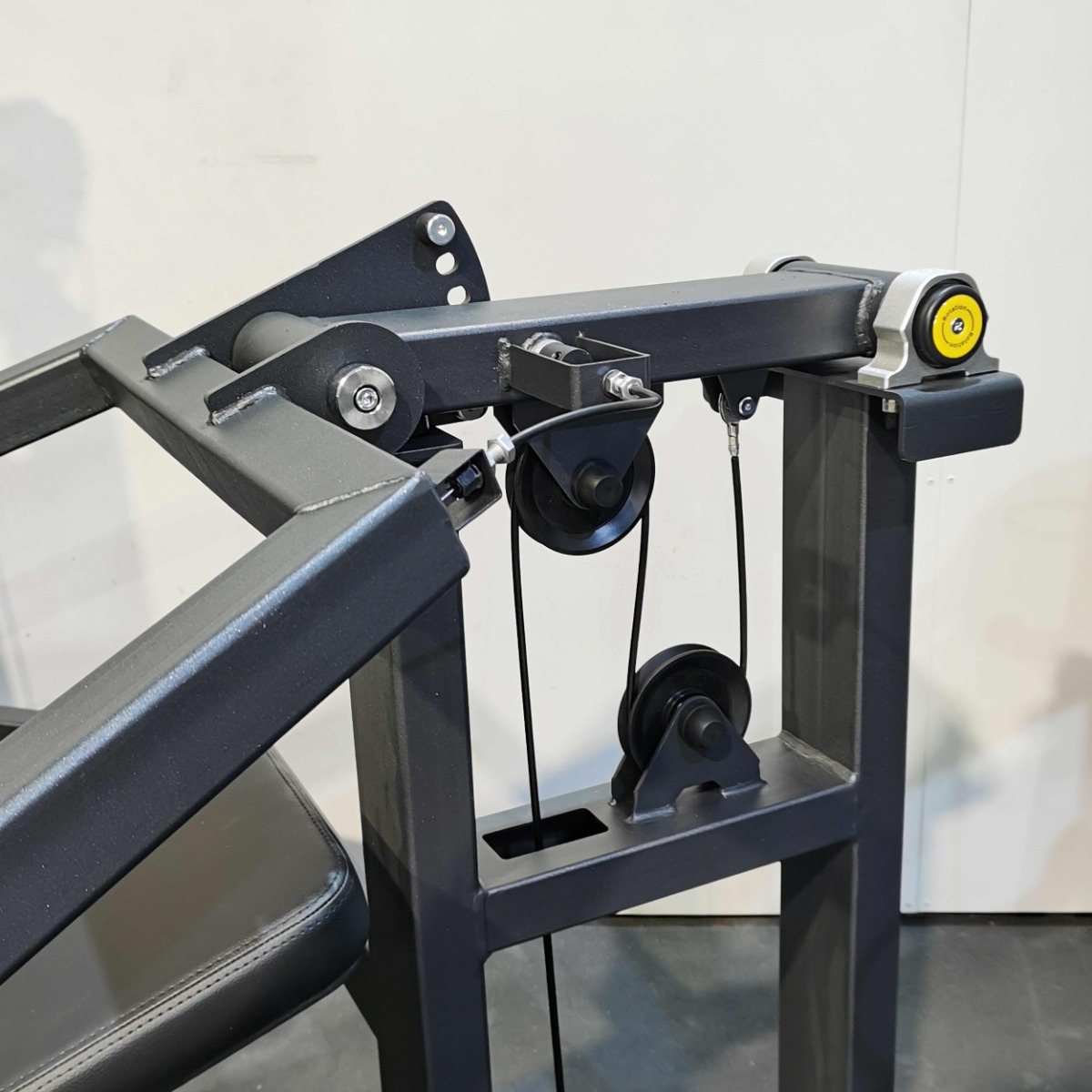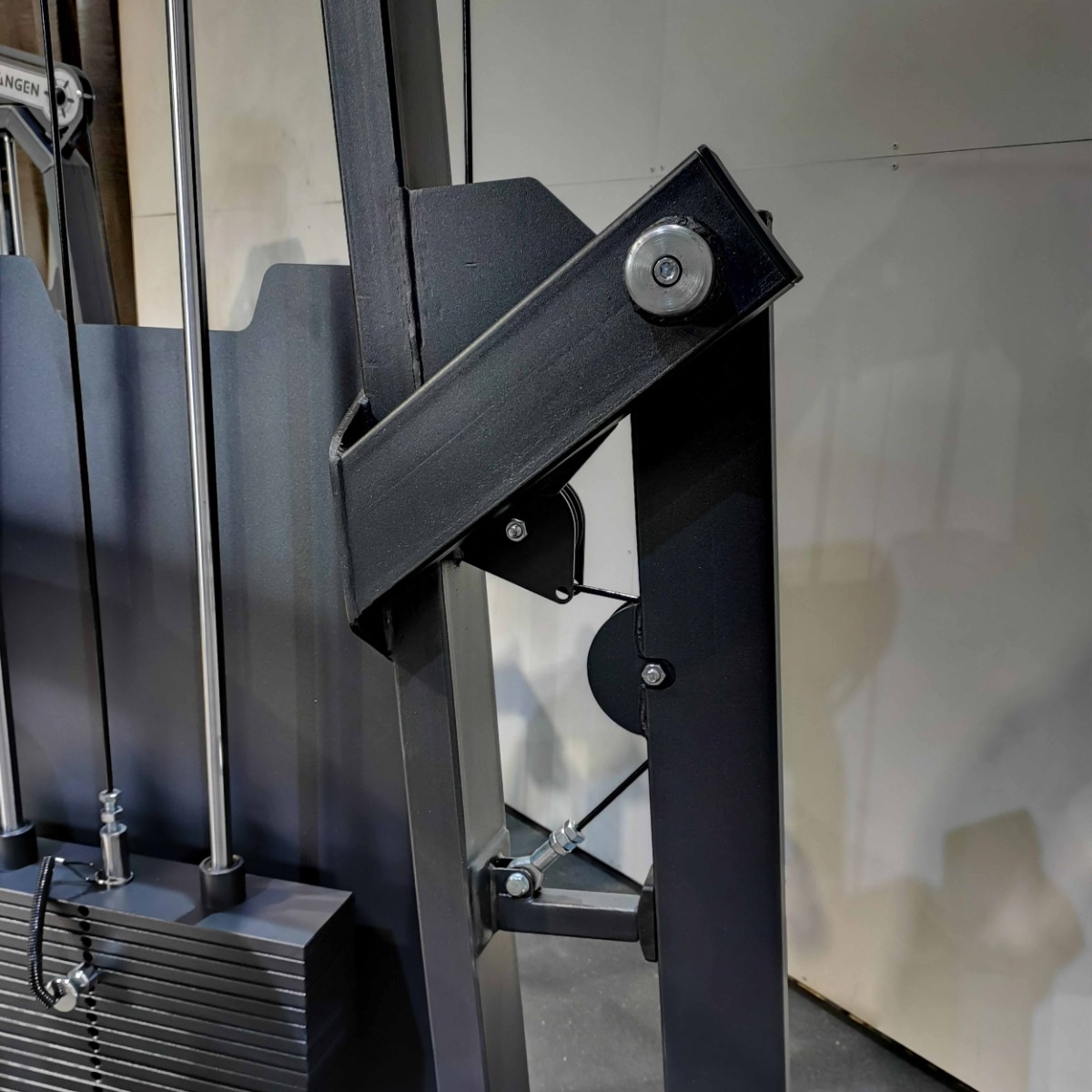 Система нагрузки – тросовая, с весовым стеком 100 кг. Весовой стек выполнен из стальных плит с порошковым покрытием.