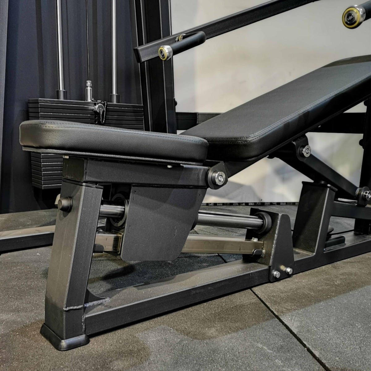 Регулируемый узел сиденья и спинки выполнен в единой направляющей системе. Изменение угла осуществляется при помощи полуавтоматического фиксатора в четырёх фиксированных положениях (60°, 45°, 30°, 20°). Такая схема обеспечивает изменение положения корпуса без нарушения оси движения и оптимальное распределение нагрузки при каждом угле наклона, а также вариативность жимов.