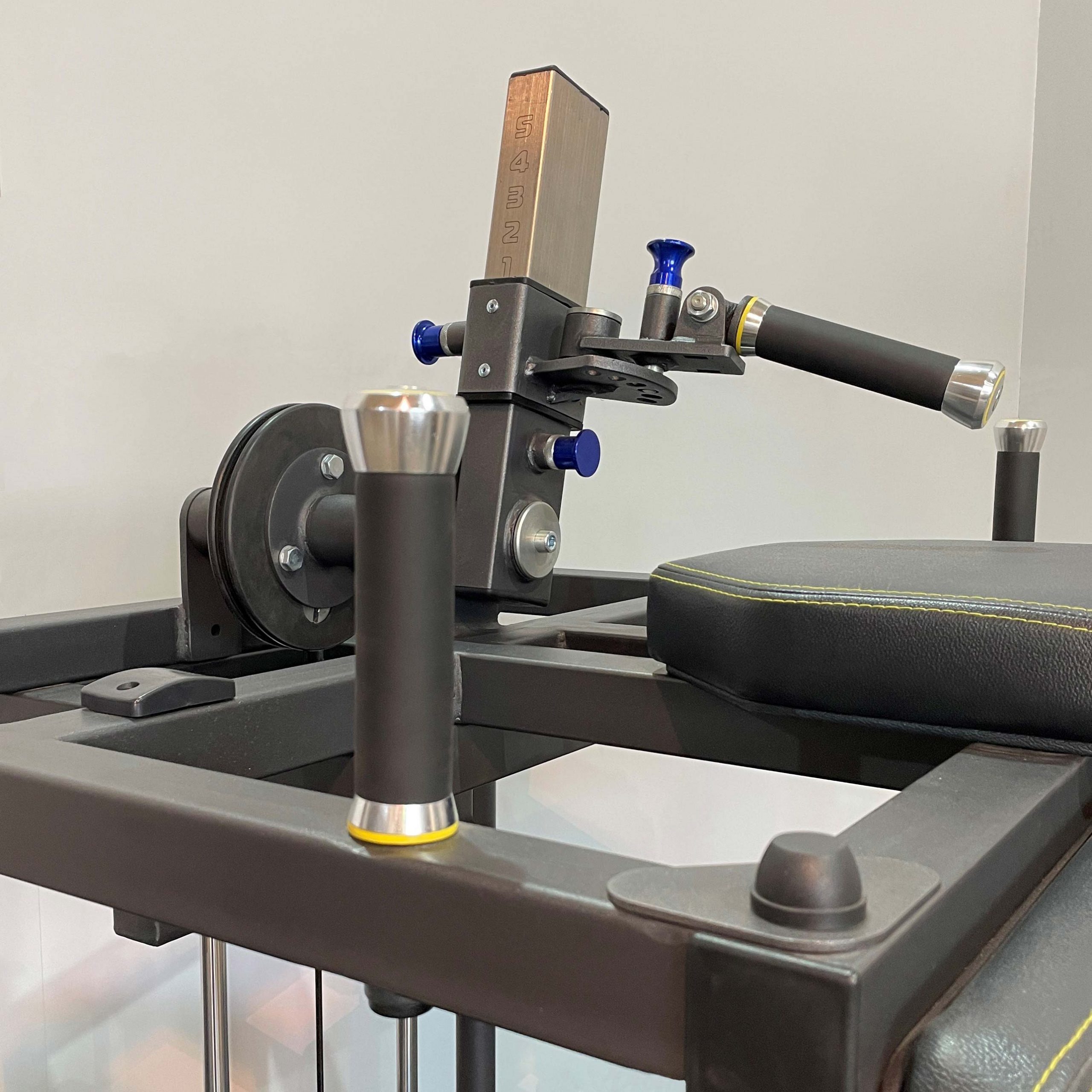 Рукоять для хвата имеет 3 степени регулировок, что дает настроить начальное положение для любого пользователя. На данном тренажере можно тренировать как левую, так и правую руки, путем переключения пружинного фиксатора на диске.
