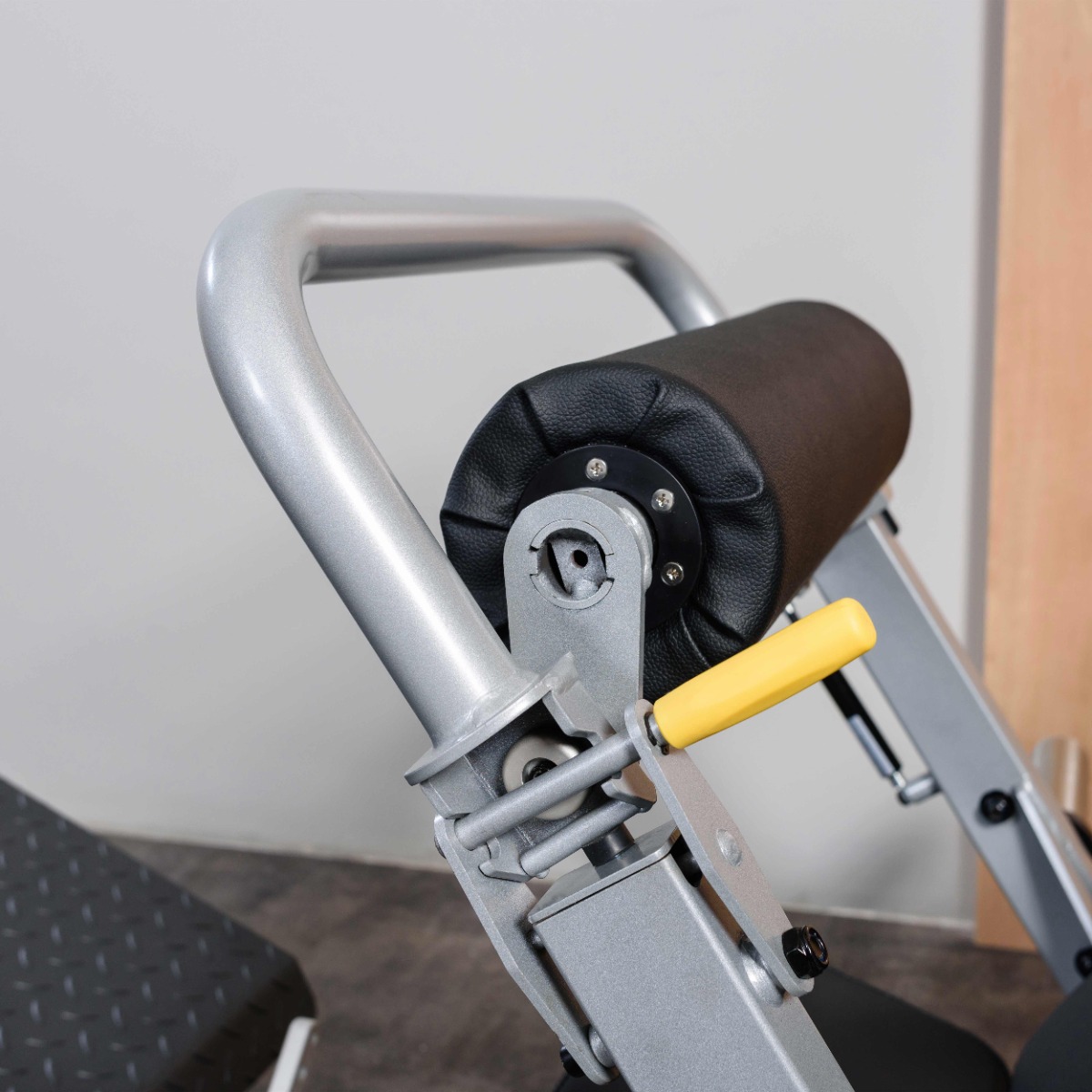 Широкий валик для фиксации бёдер длиной 450 мм регулируется в восьми положениях по дугообразной траектории, система регулировки газлифт. Валик оборудован откидным механизмом с рукояткой, при помощи которого можно беспрепятственно занять исходное положение.
