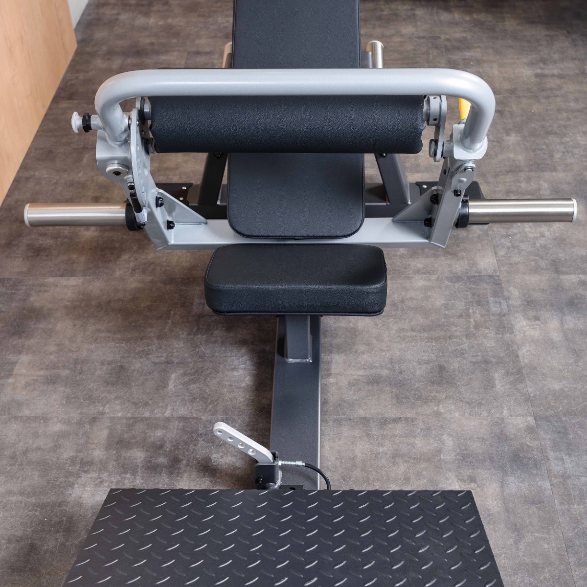 Тренажер оборудован защитными пластиковыми подпятниками для обеспечения устойчивости и предотвращения механических повреждений напольного покрытия.