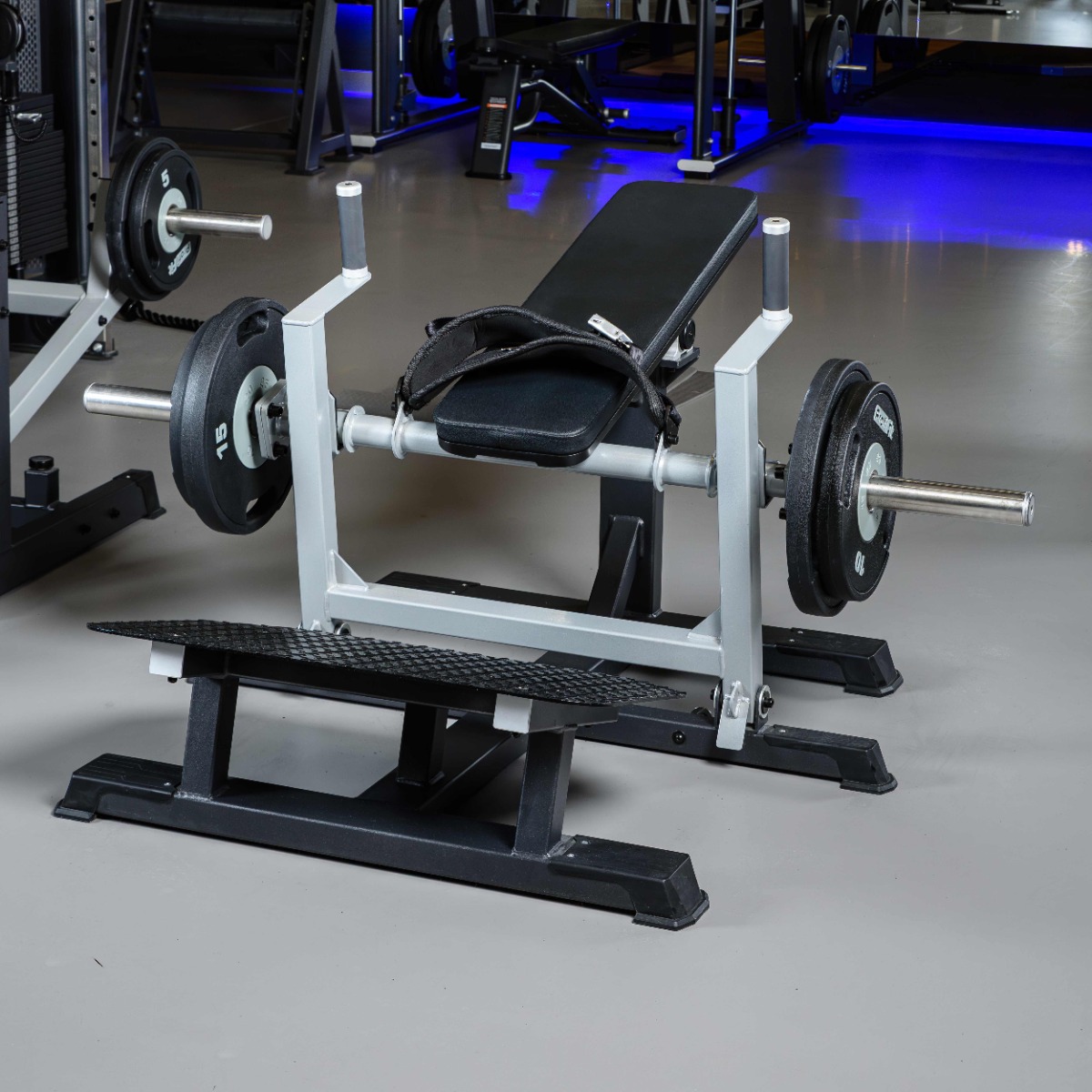Тренажер оборудован защитными пластиковыми подпятниками для обеспечения устойчивости и предотвращения механических повреждений напольного покрытия.