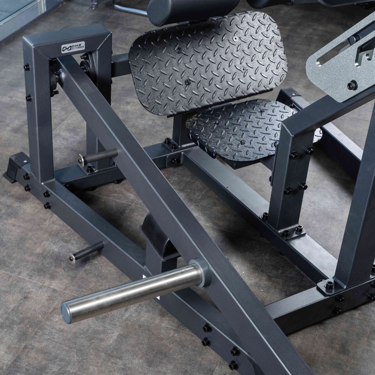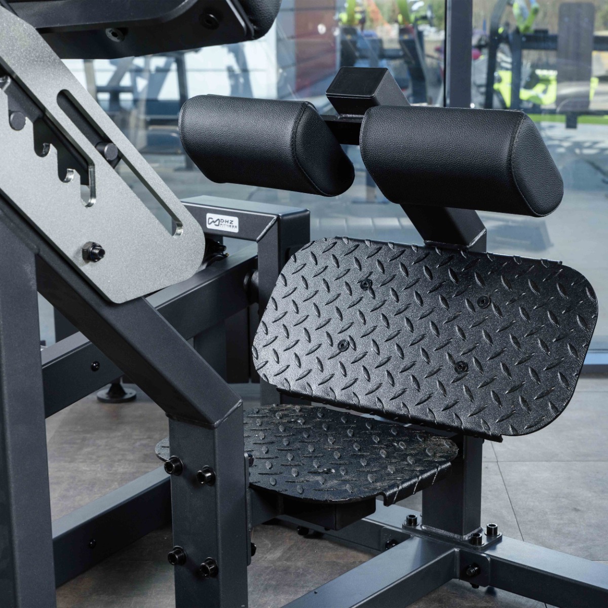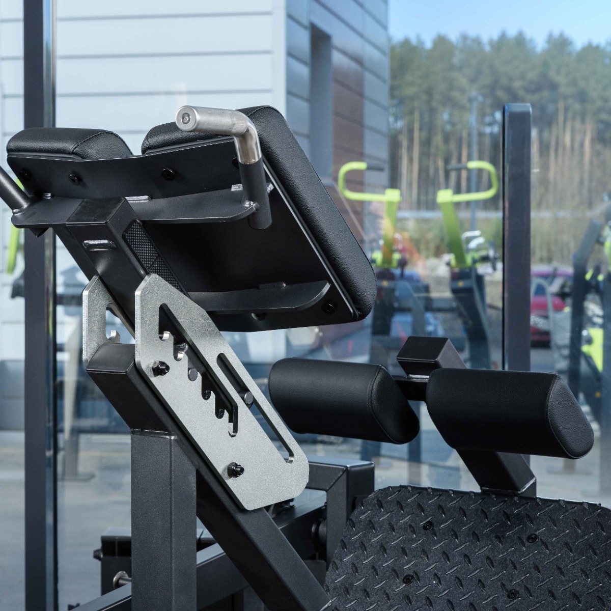 В зоне опоры ног установлены две подушки для фиксации голеней, обеспечивающие устойчивое положение тела во время выполнения упражнения. Размер одной подушки: длина 145 мм, ширина 225 мм. Расстояние между подушками: 100 мм.