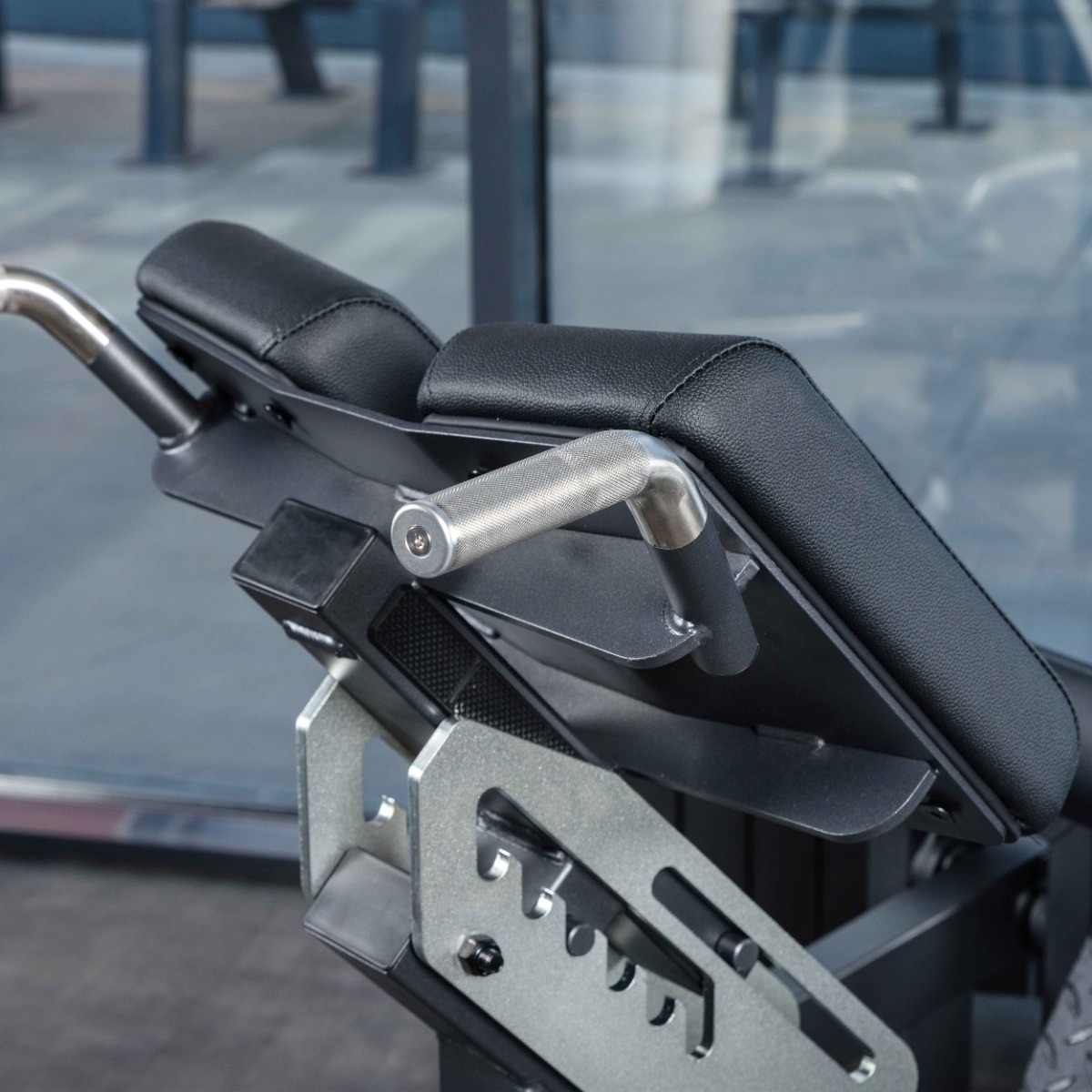 Рабочая зона тренажёра оснащена двумя отдельными подушками для опоры бёдер длиной 340 мм и шириной 190 мм каждая. Расстояние между подушками 85 мм. Подушки имеют скруглённые края для комфорта и равномерного распределения давления. Высота подушек регулируется вручную в шести положениях при помощи механического фиксатора. Начальная высота между верхним краем подушки и наклонной платформой для ног составляет 920 мм, максимальная – 1110 мм.