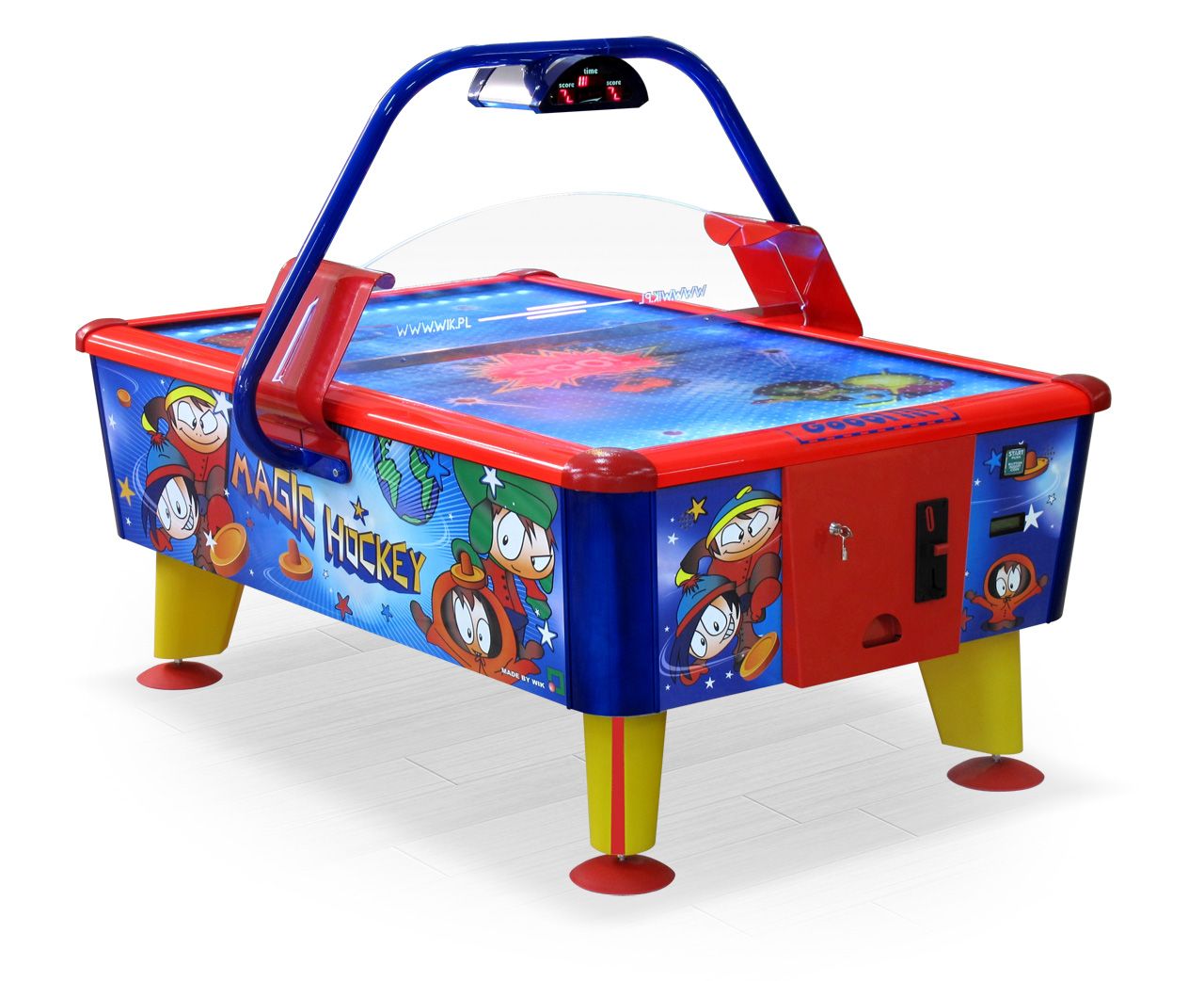 Яркий и броский, этот аэрохоккей не останется без внимания. Идеально подходит для игровых комнат и детских.