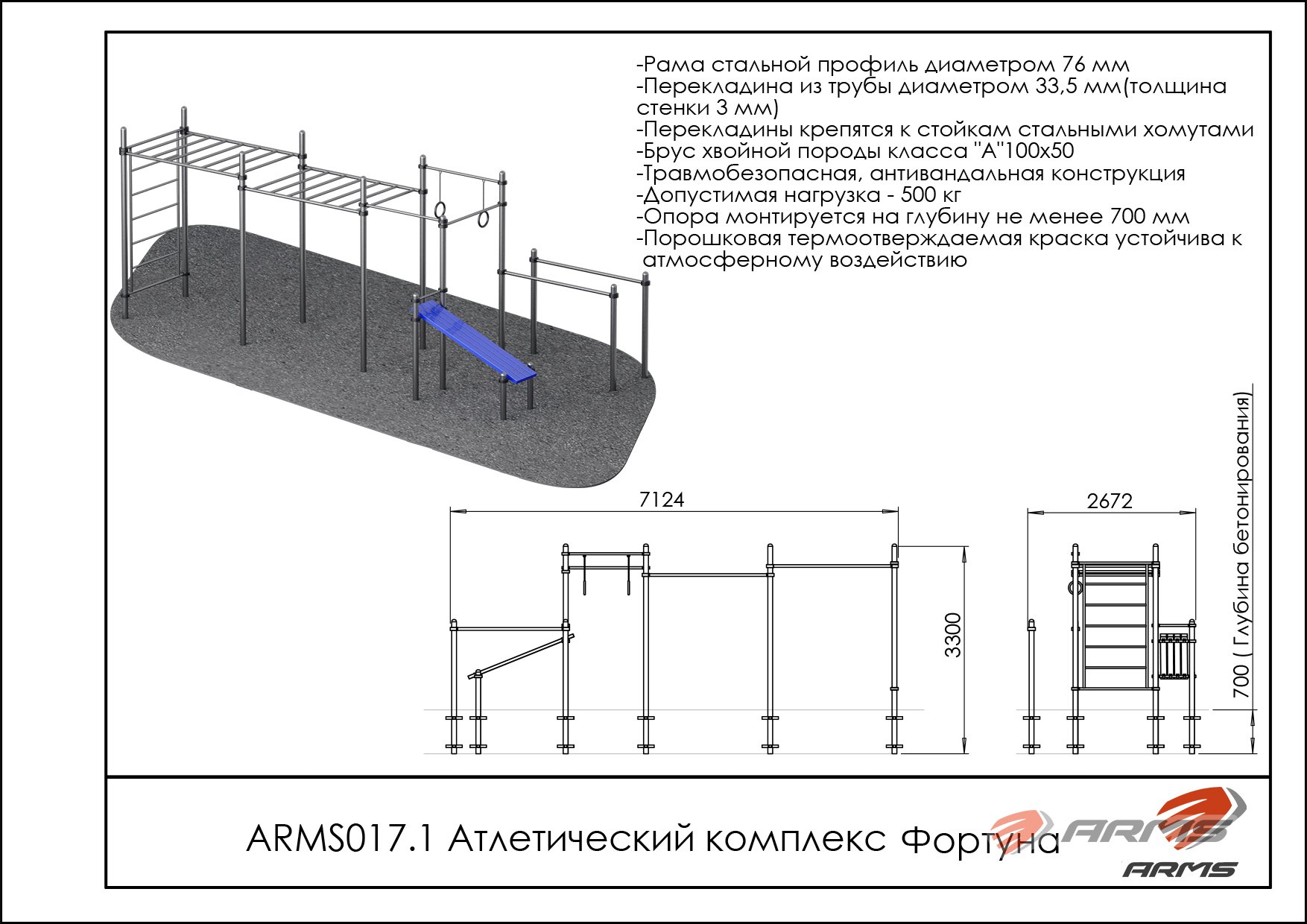 - Стальная рама из трубы диаметром 76мм, имеет куполообразную стальную заглушку, изготовленную методом горячего прессования, высота купола не менее 35% от диаметра стойки