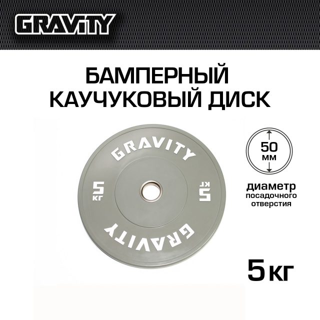 Бамперные каучуковые диски Gravity соответствуют олимпийским стандартам, имеют большой запас ресурса падений и устойчивость к повреждениям и деформации. Наличие металлической втулки, которая не выпадает при падении штанги, обеспечивает дополнительную прочность. На каждый диск нанесена информация о его весе, что позволяет быстро выбрать нужный снаряд во время тренировки.