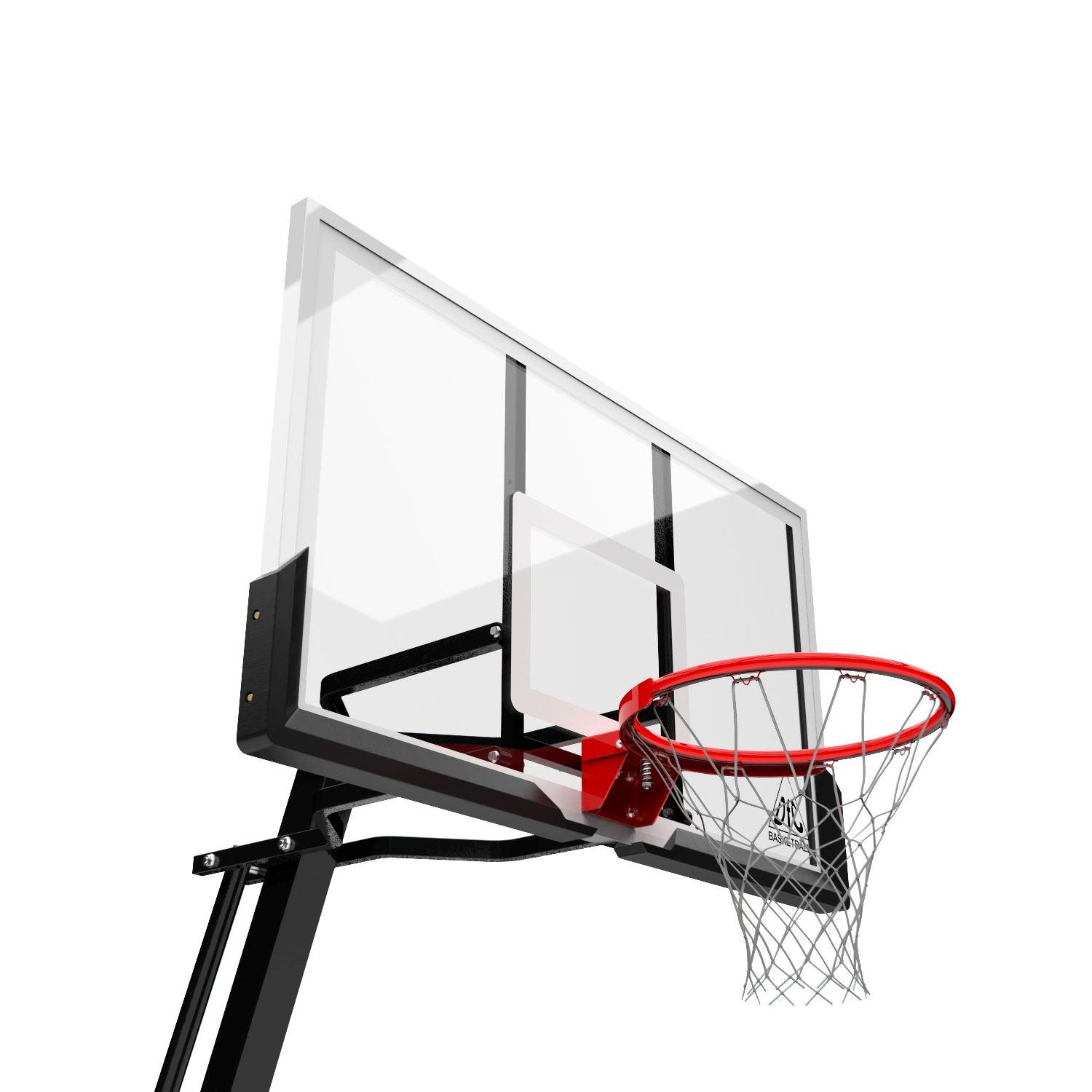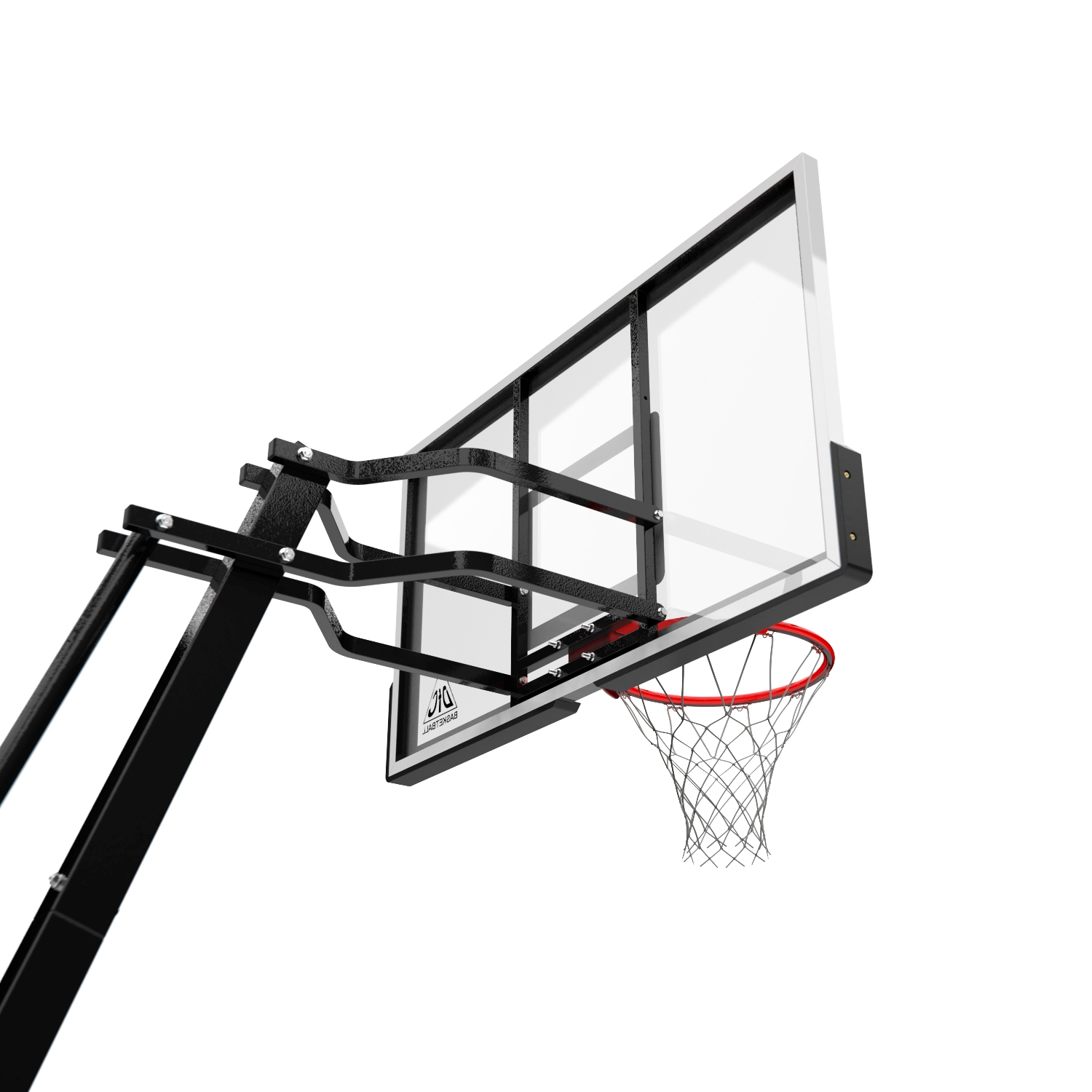 Щит имеет размерность 136 х 80 см (54’’), в комплекте идет кольцо DFC R3 с амортизацией. Регулировка высоты стойки осуществляется с помощью телескопического поворотного механизма.