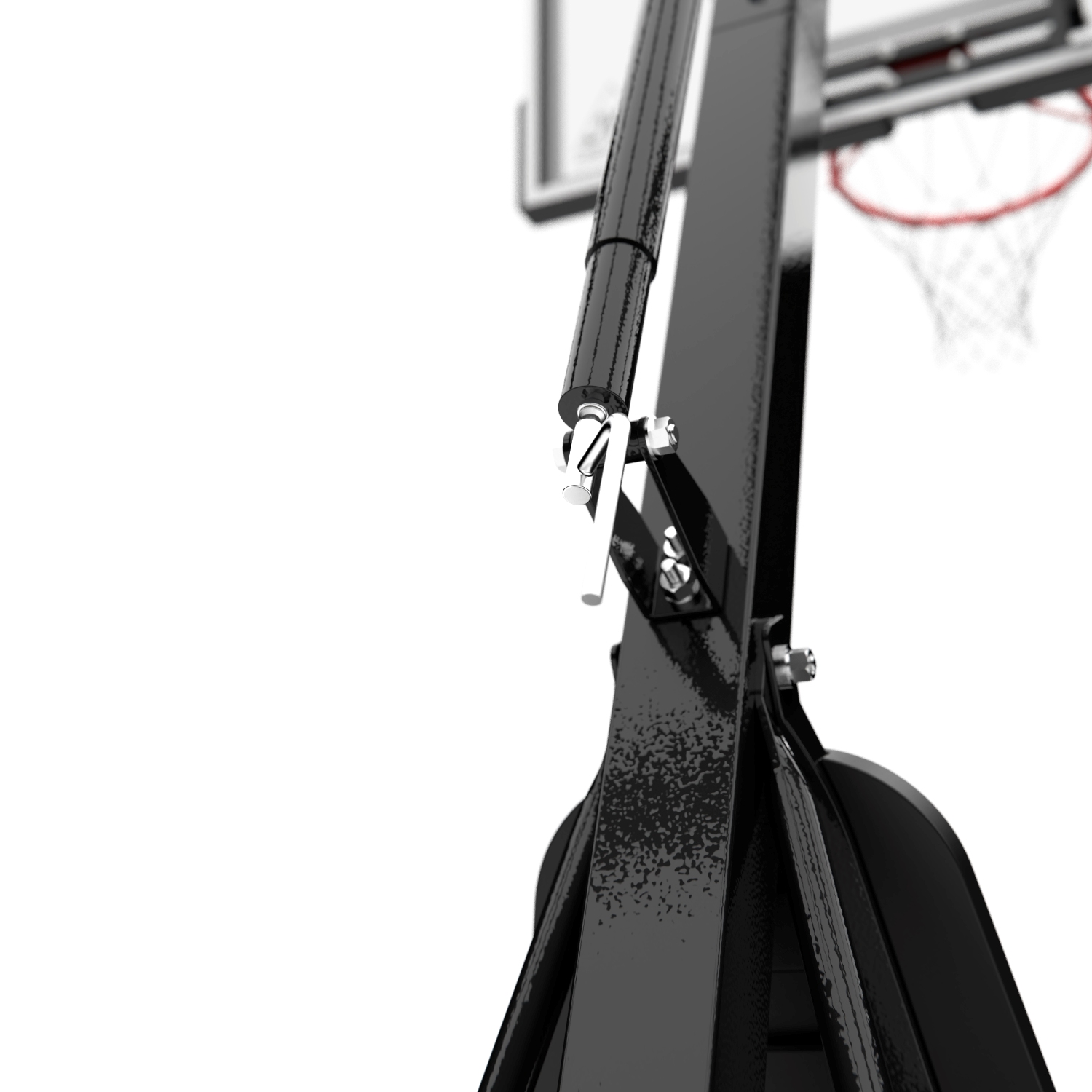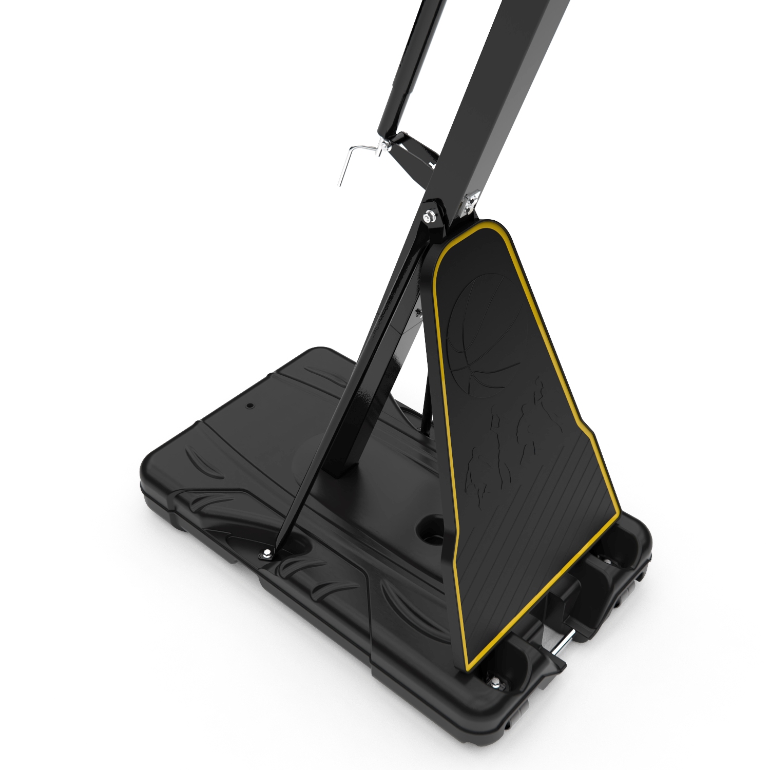 Портативные баскетбольные стойки серии DFC REACTIVE совмещают в себе мобильность и обеспечивают отскок мяча, как на профессиональной площадке. Благодаря усиленной конструкции удалось добиться увеличенного вылета щита, при сохранении компактности размещения. Он регулируется в диапазоне от 230 до 305 см, имеет защитное покрытие Poly Pade в нижней части. В основание стойки (объем 114,7 л) необходимо залить воду или засыпать песок в качестве утяжелителя.