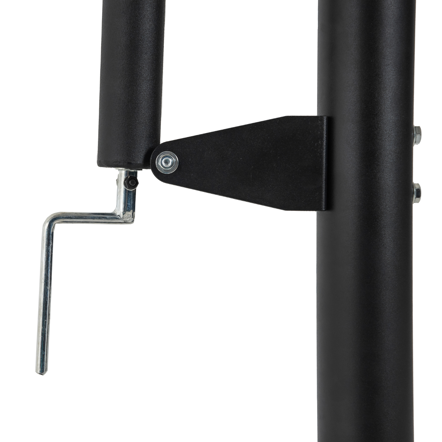 Щит регулируется по высоте в диапазоне от 230 до 305 см по кольцу. Поворотный механизм позволяет осуществлять регулировку высоты стойки даже детям. В среднем положении вынос щита составляет 45 см.