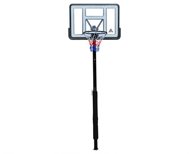 Стойка DFC ING44P1 подходит для использования на улице и в помещении. Модель оснащена щитом из поликарбоната размером 110х75 см. Щит закреплен на стойке, которая регулируется по высоте от 245 до 305 см. В комплекте идет нейлоновая сетка. Диаметр кольца составляет 45 см. Для удобства перемещения стойка оборудована транспортировочными колесами.