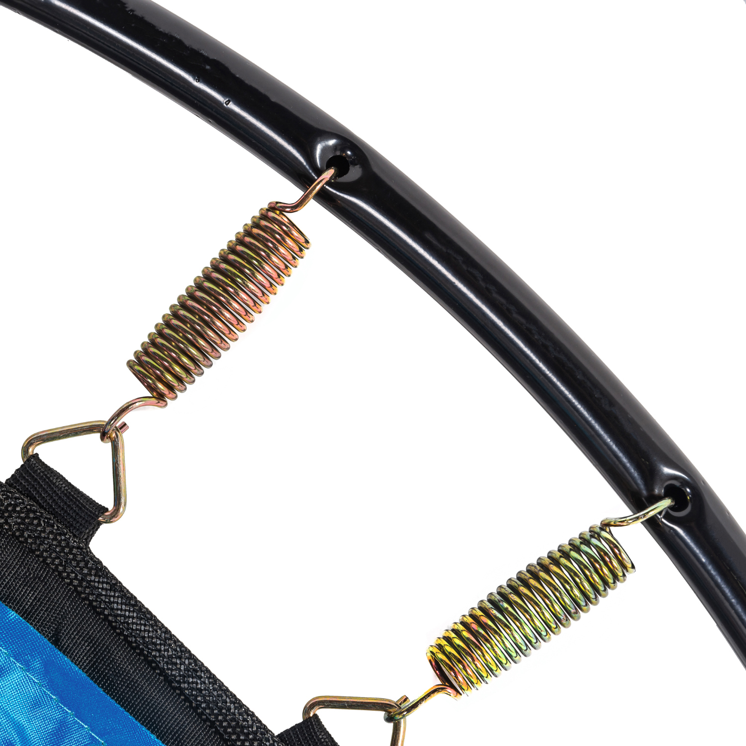 Вход в батут открывается и закрывается на молнию, бегунок размещен снаружи, чтобы ребенок не смог открыть самостоятельно.