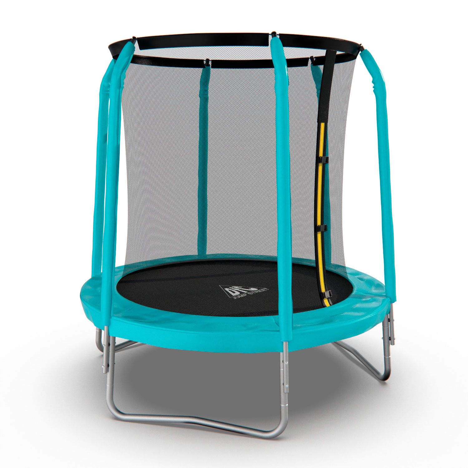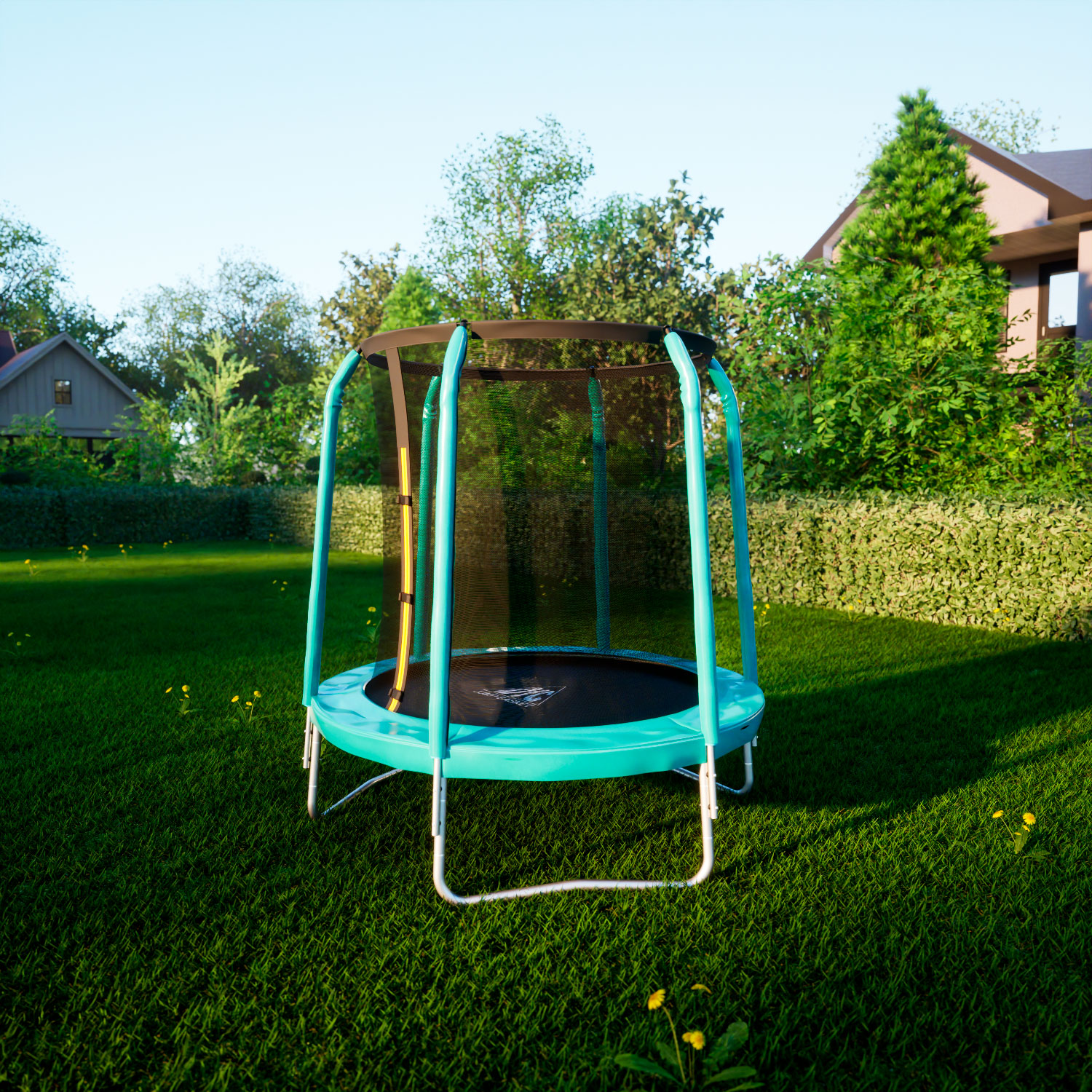 Для обеспечения безопасности пользователя, пружины закрыты защитным чехлом (защитным матом). Высота батута от пола до прыжкового полотна 55 см. Диаметр батута составляет 182,88 см.