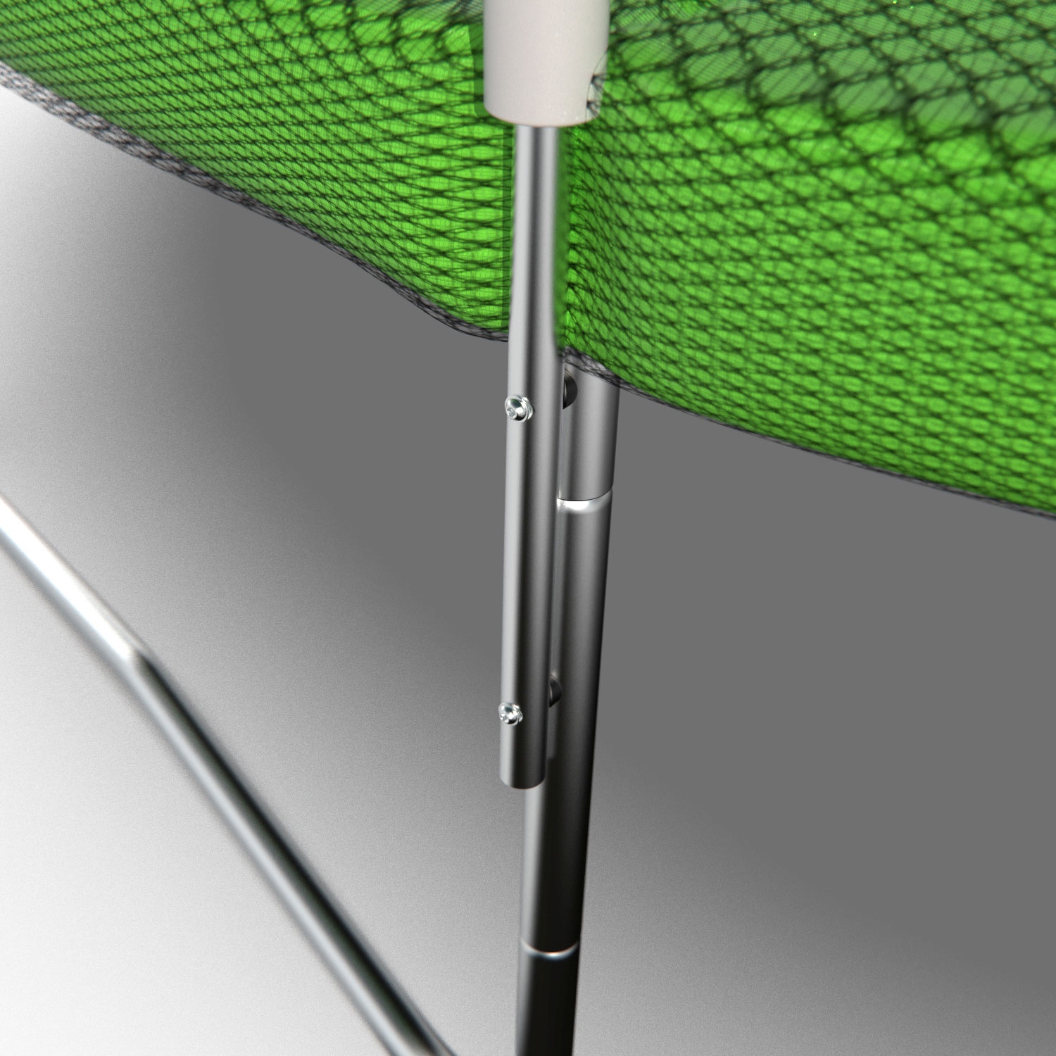 Внешняя защитная сетка, поставляемая в комплекте, обеспечит безопасность вам и вашим близким от случайного падения, изготовлена из высокопрочного нейлона, надежно крепится к стойкам батута.