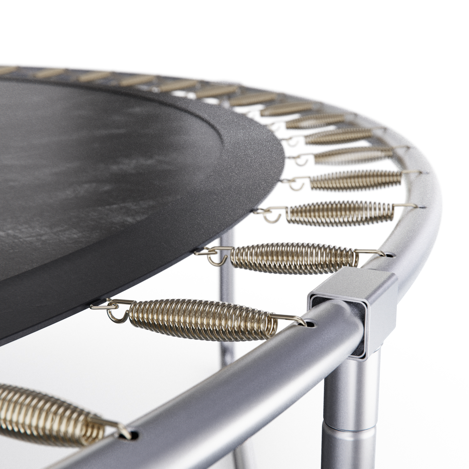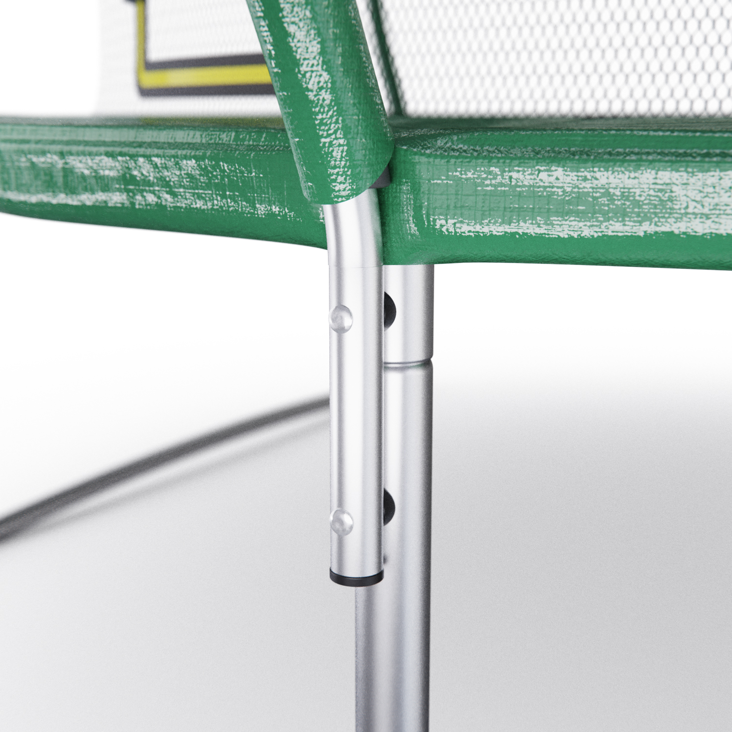 Основная рама и 3 U-образных ножек диаметром 38 мм гарантируют стабильность и устойчивость батута даже на неровной поверхности.
