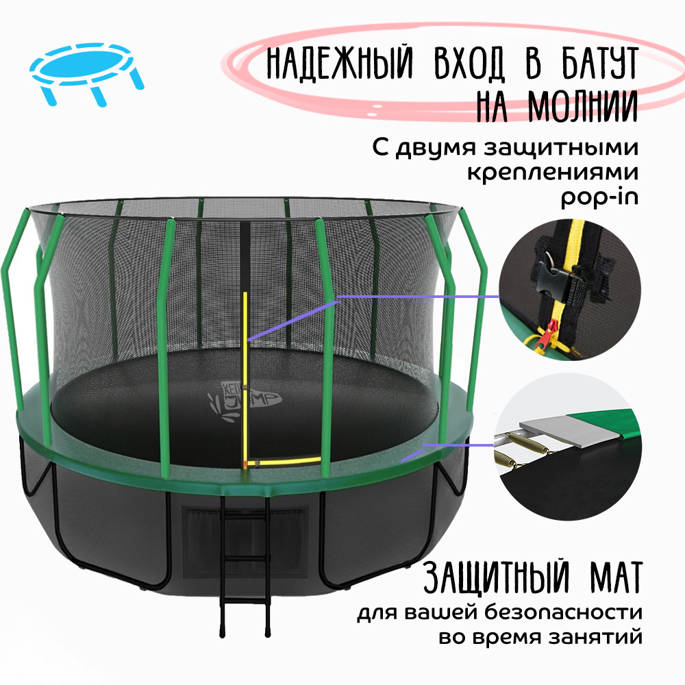 2 защитные сетки — верхняя сетка не даст упасть с батута, нижняя — от попадания под батут людей и животных.