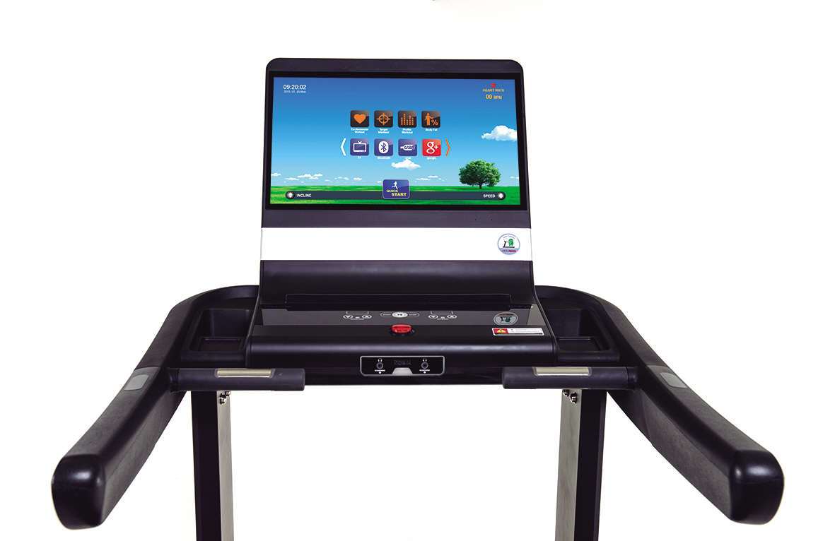 - Тренажер оснащен 23″ LED HD Touch-screen экраном со встроенным TV.