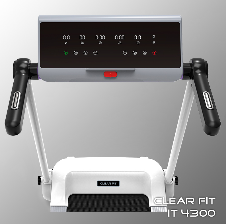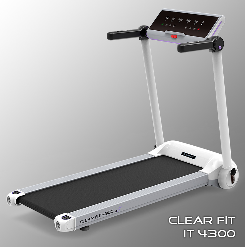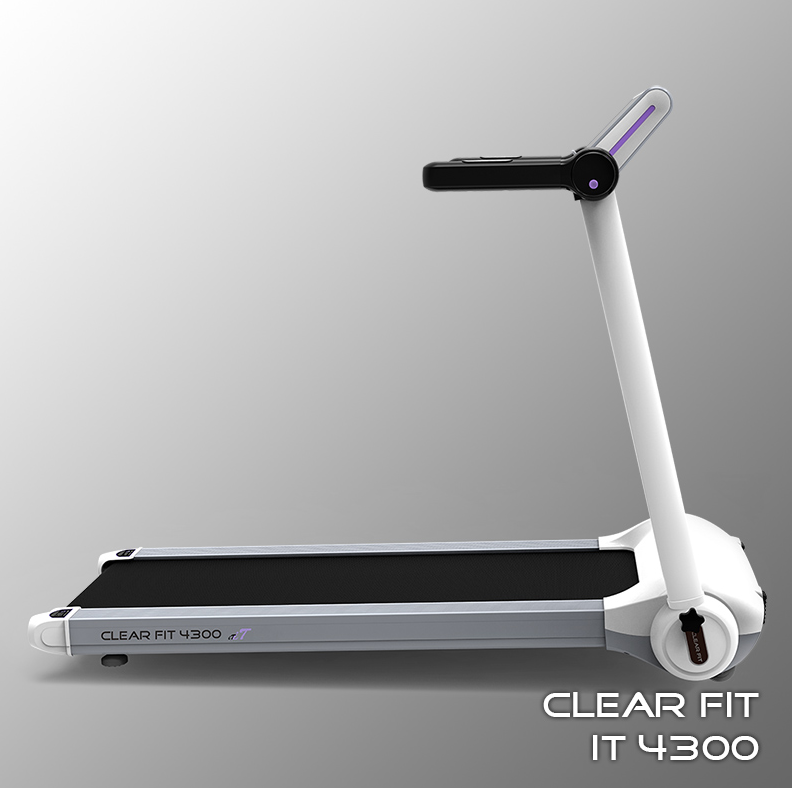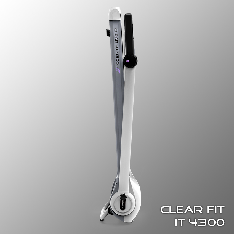 Новая модель Clear Fit компактной серии iT 4300 – современная и удобная беговая дорожка, качественные комплектующие, надежная электроника, стильный экстерьер, основной цвет — белый. Основное отличие модели – усовершенствованная современная консоль с большим монитором 21,3”, белой подсветкой и крупным шрифтом вывода показателей. Дорожка, как и все модели серии, оснащена компактной системой складывания и хранения, легкой, удобной и безопасной, габариты хранения 30 х 75 х 148 см. Хранить можно как в горизонтальном, так и в вертикальном положении: в шкафу, кладовке, за дверью, под кроватью. Высокие технические характеристики позволяют проводить ежедневные домашние тренировки, как на стандартной дорожке. Ширина полотна 42 см, длина 120 см, надежный мотор обеспечивает диапазон скорости 0,8-14 км/ч, дека 16 мм и современная универсальная амортизация по периметру для бега и ходьбы. Эргономичная надежная конструкция рассчитана на вес пользователя до 100 кг., рост пользователя для ходьбы не ограничен, для бега рассматривается индивидуально комплекции, при средней скорости рекомендуется до 180 см. Надежный двигатель обеспечивает бесперебойную и бесшумную работу, а механизм конструкции устойчивость и безопасность.