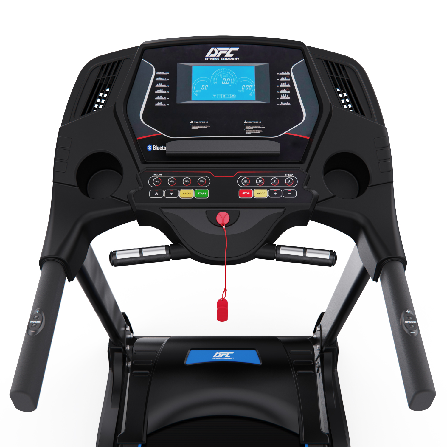 Два комплекта встроенных в поручни датчиков пульса позволят следить за частотой сердечных сокращений. Такие датчики имеют определенную погрешность. Для точности показаний рекомендуем приобрести нагрудный пояс с монитором в форме часов DFC W117. Показания консоли : скорость, время, расстояние, калории, пульс.