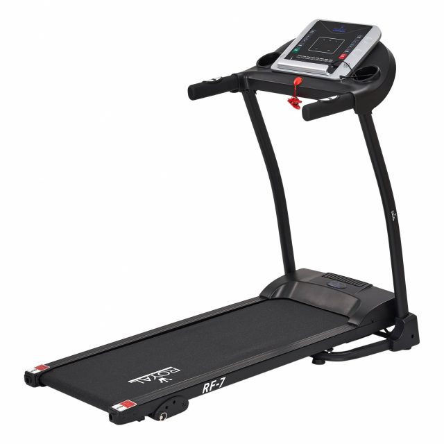 Электрическая беговая дорожка RF-7 — надежная и бюджетная модель, рекомендована для индивидуального домашнего использования. Дорожка оснащена двигателем Leeson мощностью 1,5 л.с., способным развивать скорость движения полотна до 10 км/ч. Рабочая поверхность бегового полотна размером 110 х 40 см. Габариты полотна комфортны для эффективных занятий бегом или ходьбой. На дорожке используется система амортизации, состоящей из набора эластомеров и нескольких амортизаторов, эффективно снижает нагрузку на позвоночник, суставы коленей и голеностопа. Механическая регулировка угла наклона (три уровня) позволит увеличить нагрузку на основные группы мышц. В программный пакет входит 12 предустановленные программы – пульсозависимые и целевые, также можно воспользоваться ручным режимом настройки программ. Во время тренировки все ключевые показатели — скорость, время, дистанция, калории, частоту пульса, текущий профиль выводятся на информативный 5 — дюймовый LCD дисплей. Сенсорные датчики на поручнях измеряют сердечный ритм. Гидравлическая система складывания «JUST CLICK» существенно облегчает складывание тренажера, а при раскладывании обеспечивает медленное опускание полотна в последней фазе, гарантируя легкость и безопасность. Перемещение дорожки происходит за счет ряда транспортировочных роликов. Рама из высокопрочной стали и усиленные соединения обеспечат долговечность и устойчивость конструкции беговой дорожки. Предельная нагрузка на конструкцию 110 кг. бщие характеристики Тип Домашний Мощность двигателя постоянная, л.с. 1,5 л.с. Мощность двигателя максимальная, л.с. 2 л.с. Двигатель LEESON (США) /КПД 96 % Максимальная скорость, км/ч 1-10 км/ч Угол наклона 3 уровня Размер бегового полотна (ДхШ), см 110 х 40 см Толщина деки полотна 12 мм Регулировка угла наклона механическая Максимальный вес пользователя, кг 110 Измерение пульса На рукоятках Кнопки регулировки скорости и наклона на рукоятках Есть Конструкция Амортизация Есть, многозонная Размер в рабочем состоянии (дл. х шир. х выс.), мм 1430*635*1220 Габариты коробки, (дл. х шир. х выс.), мм 1440*670*255 Вес нетто, кг 35 Вес брутто, кг 40 Держатель планшета Есть Транспортировочные ролики Есть Компенсаторы неровности пола Есть Компьютер Дисплей LCD-дисплей 5”, с синей подсветкой Показания на дисплее время, скорость, дистанция, калории, пульс Программы 12 предустановленных программ Разъемы USB, AUX Дополнительно Питание тренажера 220 В Потребляемая мощность, кВт/ч 0,58 Страна-производитель Китай Сертификаты CE, ЕАС, RoHS Срок гарантии 1 год