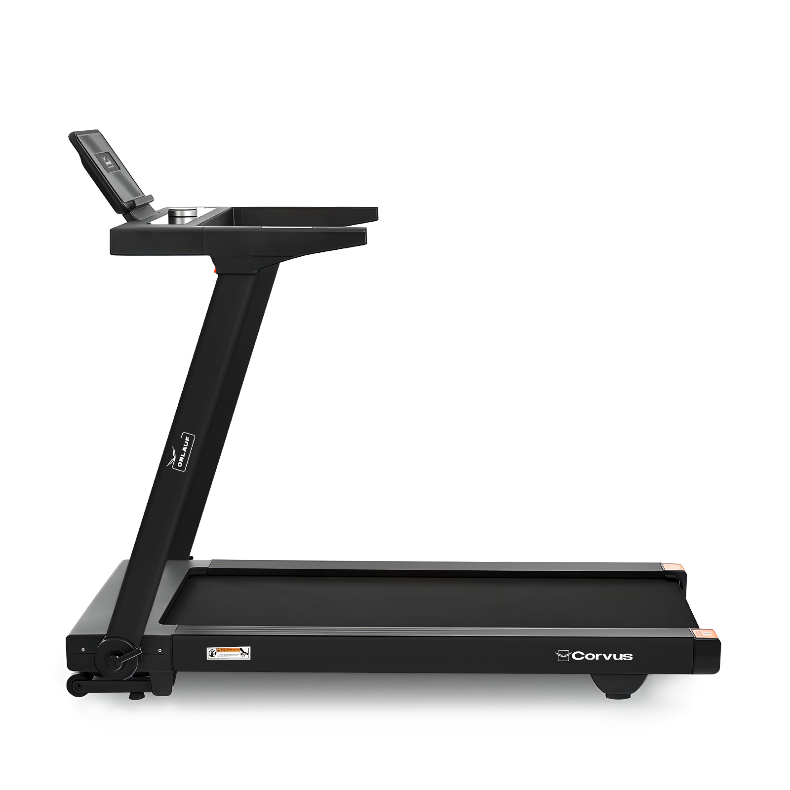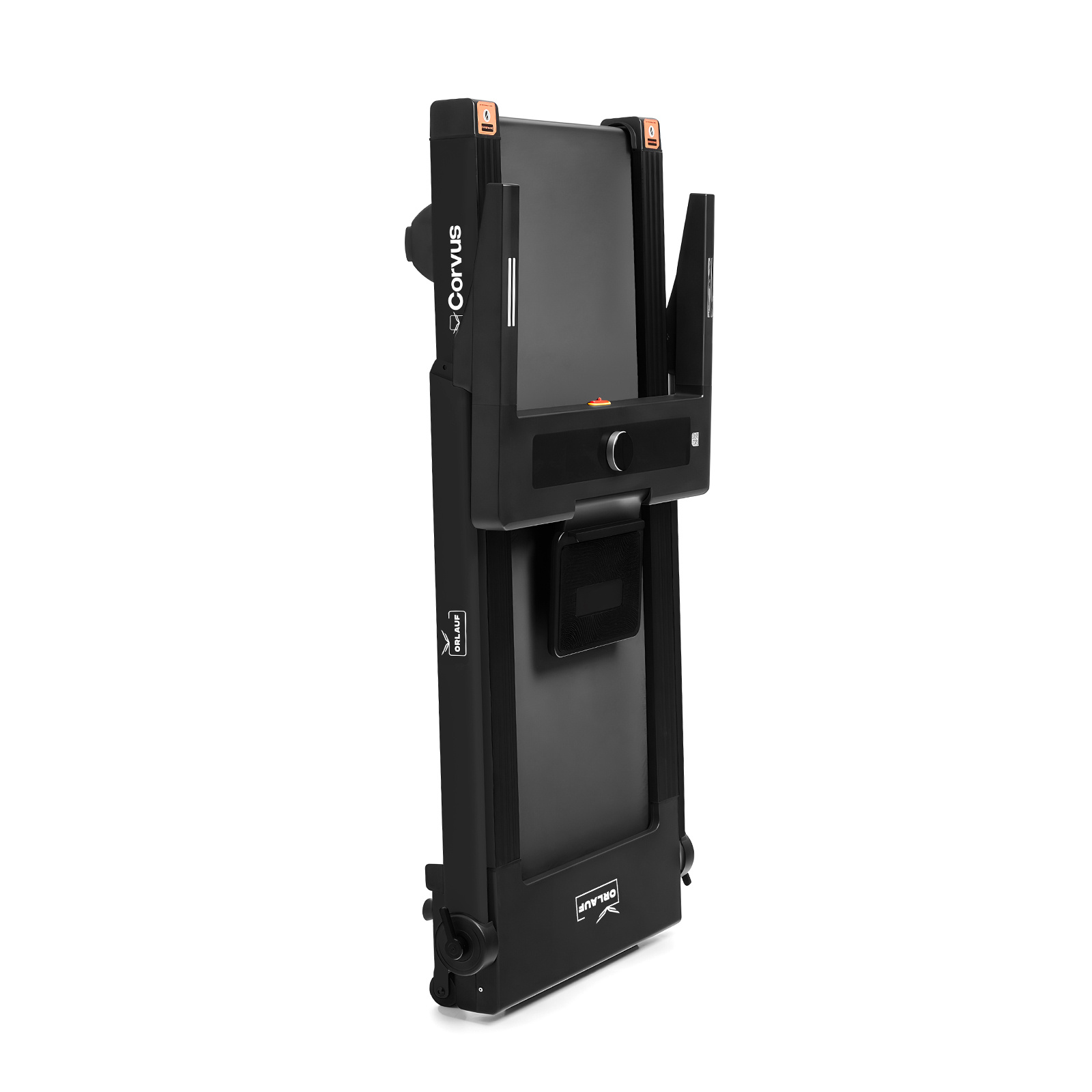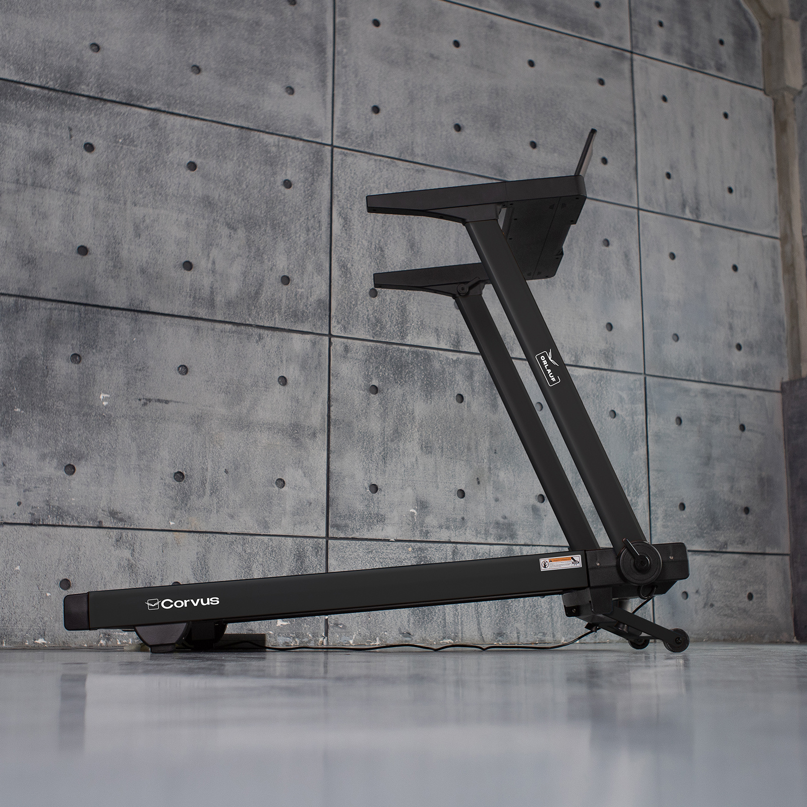Беговая дорожка Orlauf Corvus — функциональное решение для домашних тренировок, которое легко впишется в любой интерьер. Компактное складывание до толщины 25 см позволяет хранить дорожку вертикально или горизонтально, экономя пространство. Это удобный выбор для тех, кто ценит компактность и эффективность тренажера в условиях ограниченной площади.