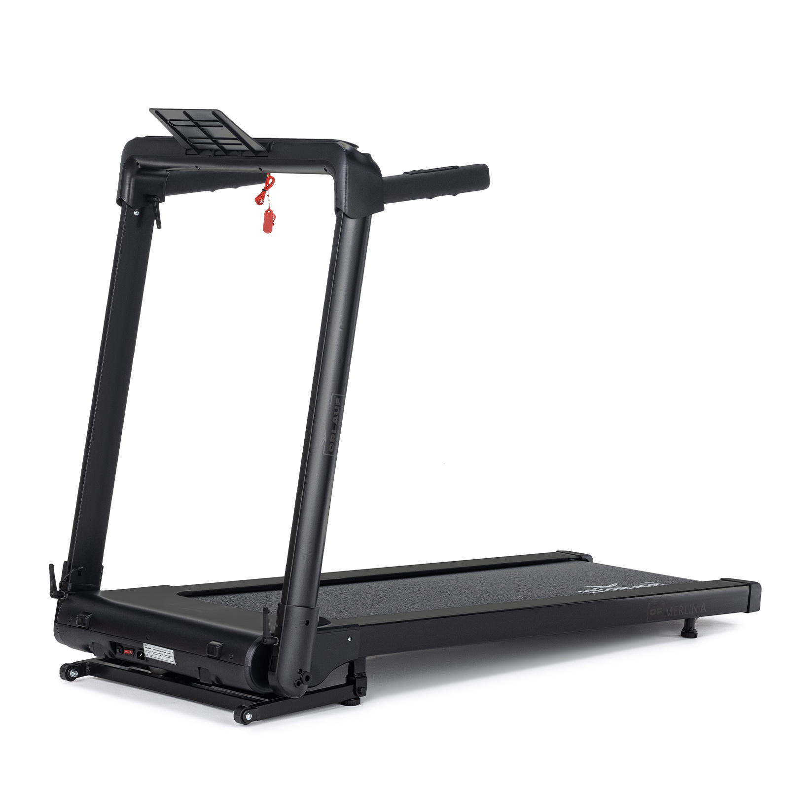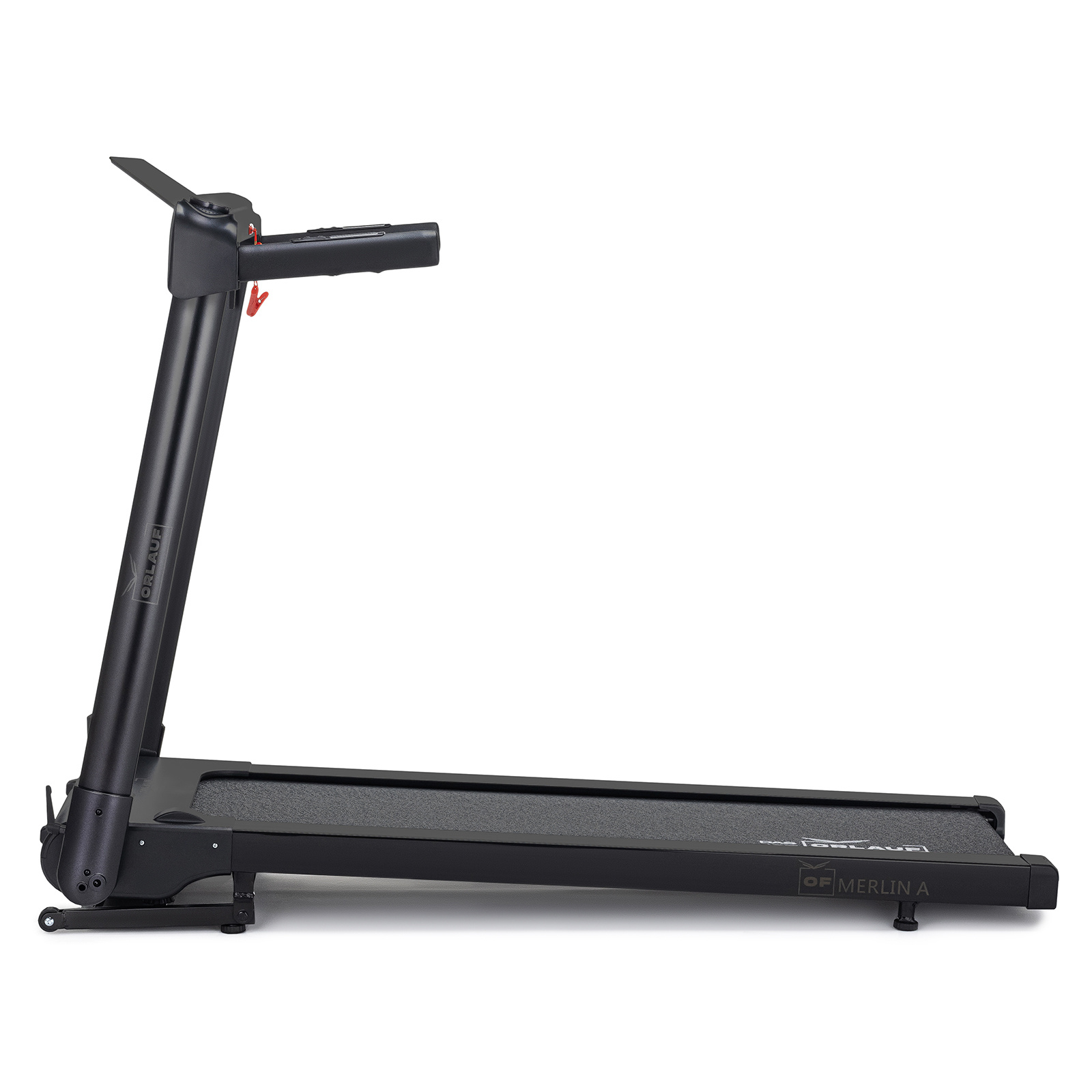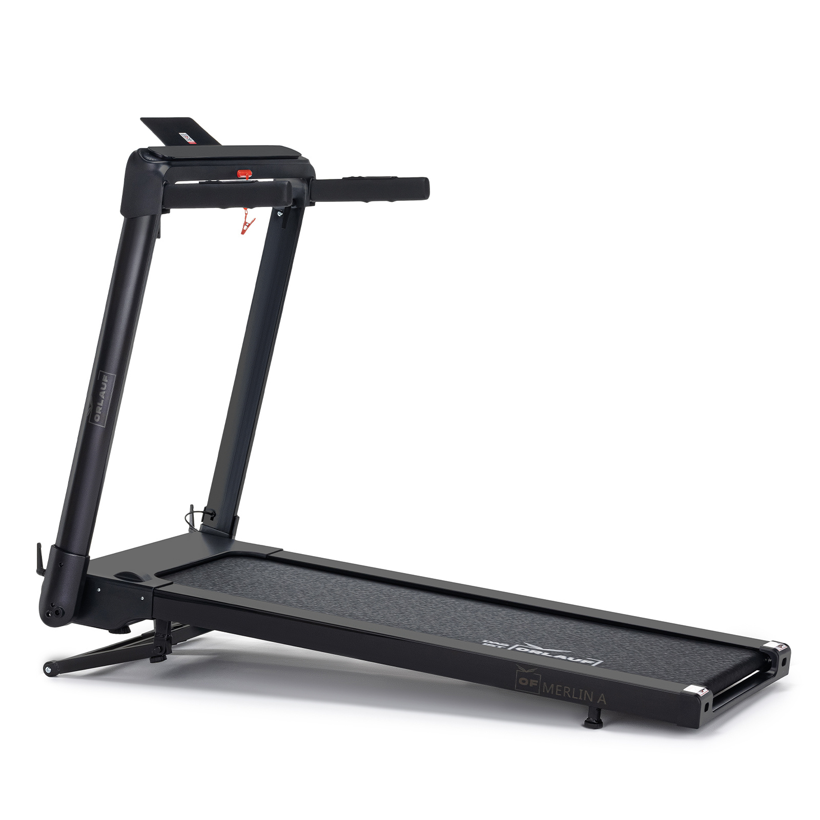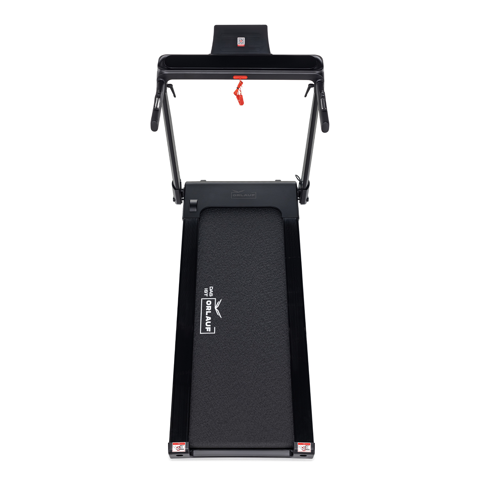 Orlauf Merlin A складывается с толщиной всего 25 см, что позволяет хранить тренажер в вертикальном и горизонтальном положении. Дорожка оснащена транспортировочными роликами для удобного перемещения. Модель выполнена в цвете Starless Night, что позволяет ей гармонично вписаться в различные интерьеры.