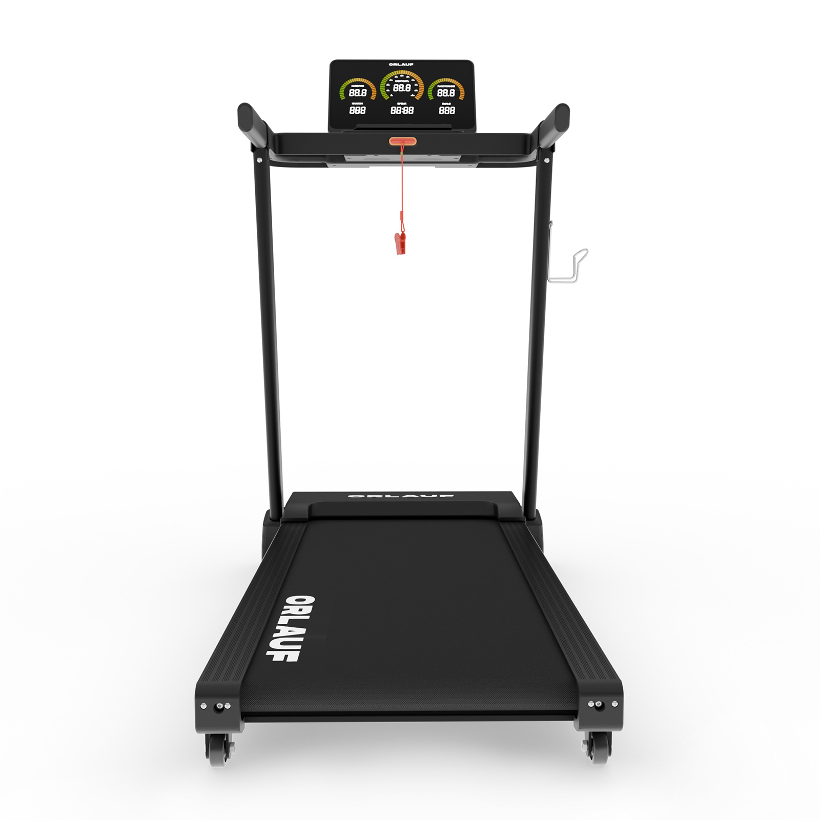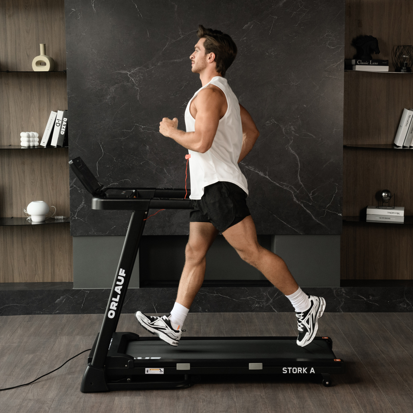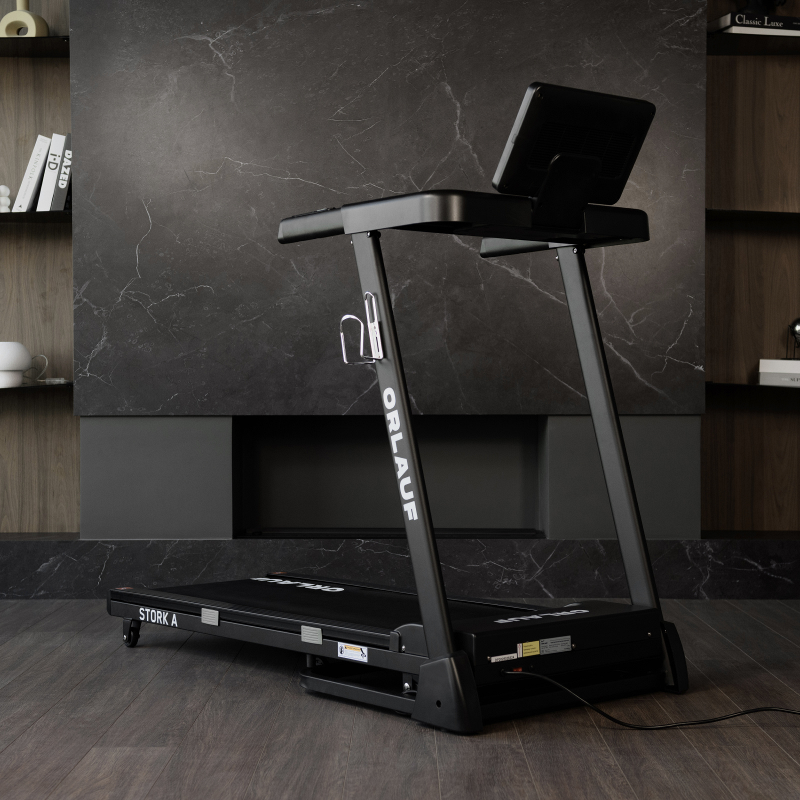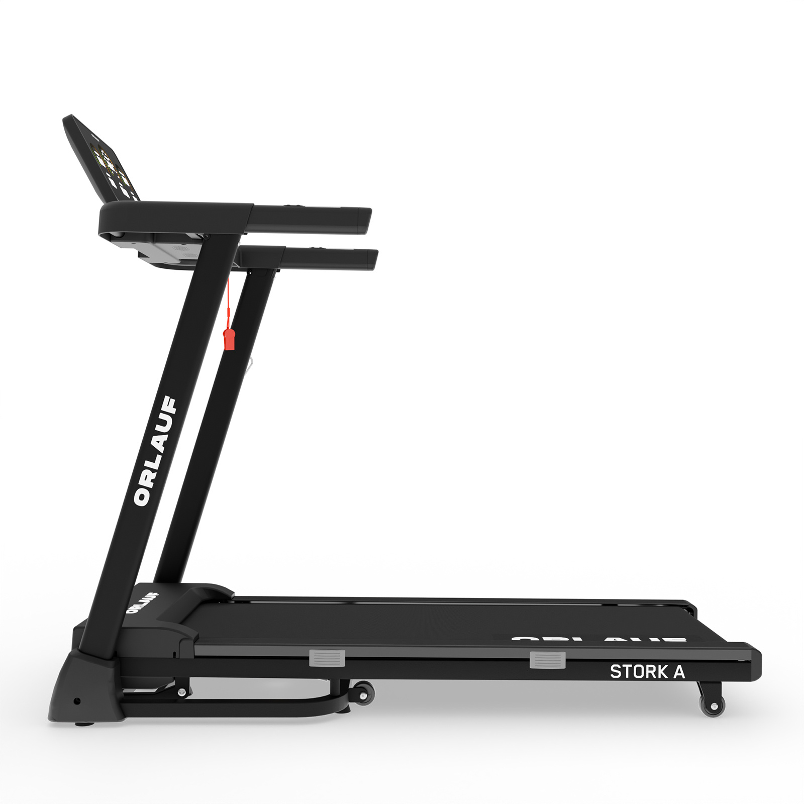 Orlauf Stork A оснащена ярким LED-дисплеем с русской локализацией и кнопками быстрого доступа на поручнях. Электронная регулировка угла наклона расширяет возможности тренировок, имитируя бег по пересеченной местности. Модель совместима с приложениями FitShow, Kinomap и Zwift, предоставляя доступ к виртуальным маршрутам и интерактивным программам. Для удобства пользователей предусмотрены 15 автопрограмм, 3 пользовательских режима, функция жироанализатора, держатель для воды и транспортировочные ролики.