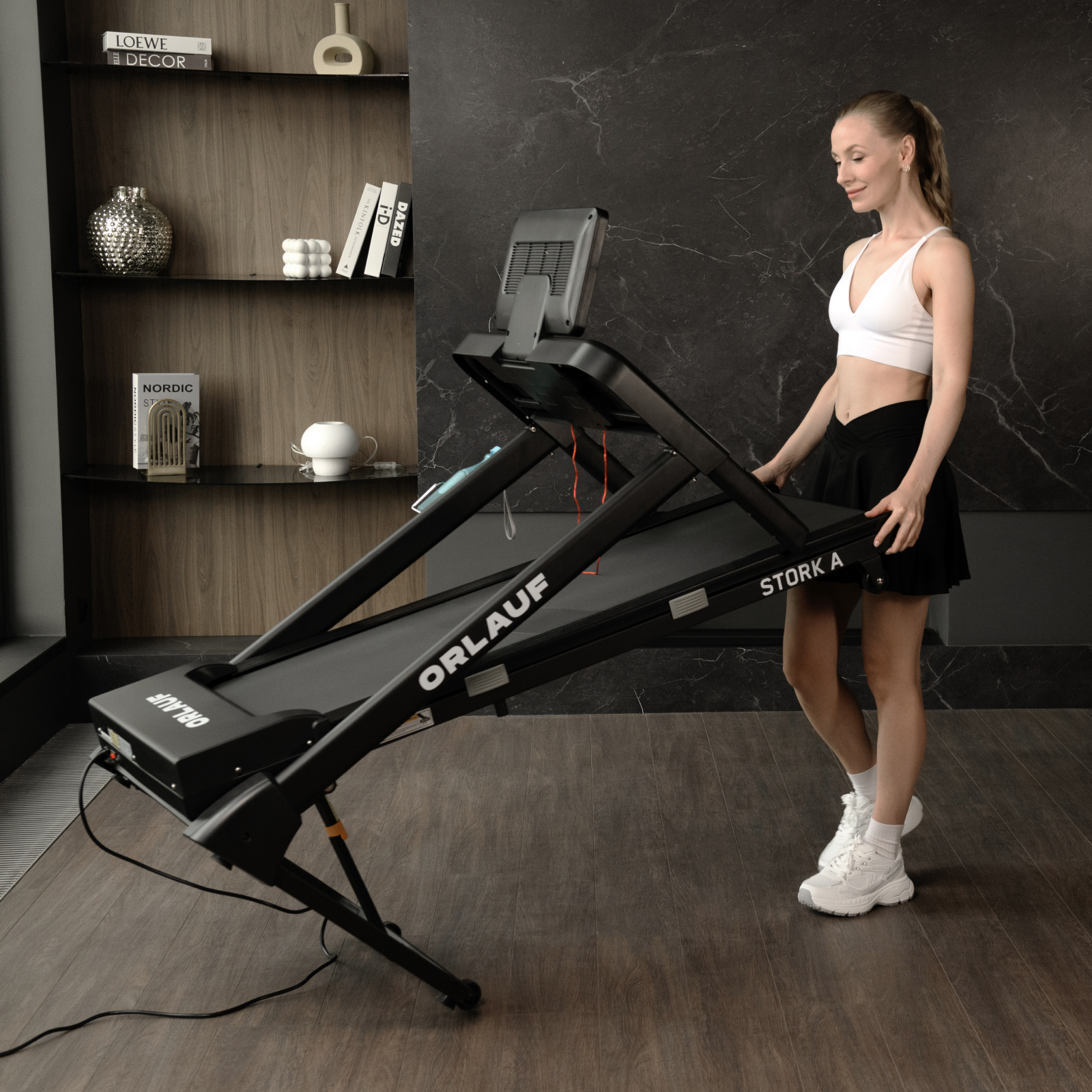 Электрическая беговая дорожка Orlauf Stork A – это инновационное решение для тех, кто стремится совместить профессиональные тренировки с эстетикой домашнего пространства. Модель оснащена уникальной горизонтальной системой складывания с газлифтом Raiser™, которая позволяет легко трансформировать тренажер в стильный элемент интерьера. Эргономичная конструкция и продуманная система безопасности делают использование максимально удобным.