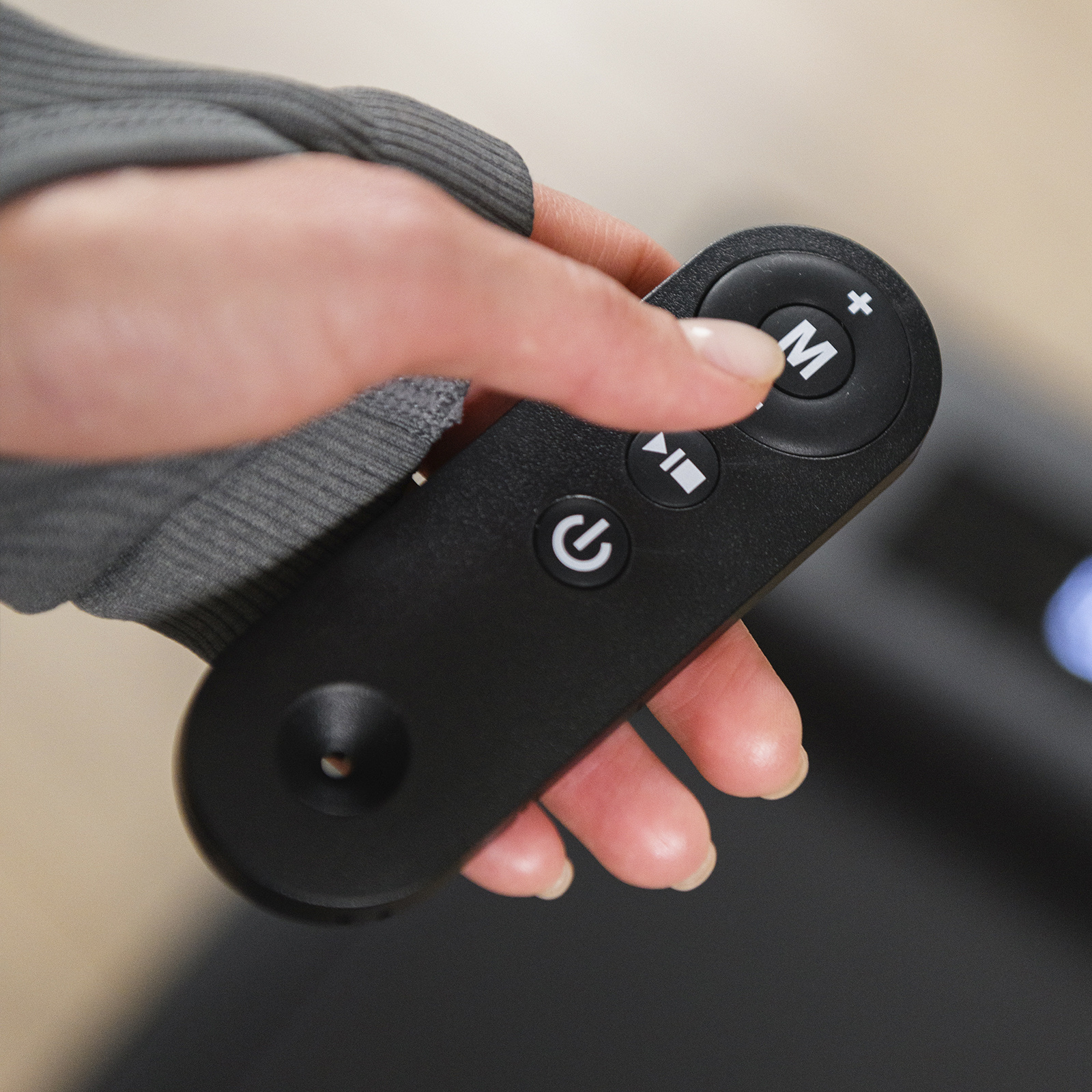 Управление дорожкой осуществляется с помощью пульта дистанционного управления. Дисплей отображает основные параметры тренировки: время, скорость, дистанцию и сожжённые калории. Ключ безопасности обеспечивает мгновенную остановку в случае необходимости.