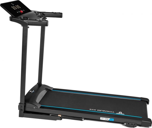 Titanium One T45 С – электрическая беговая дорожка как для начинающих, так и тех, кто уже достиг определенных результатов в домашних тренировках. Тренажер выполнен в классическом форм- факторе и ориентирован на полноценную тренировку. Максимальная скорость составляет 12 км/ч – этого достаточно для ходьбы и бега со средней скоростью. Размер бегового полотна 118*40 см позволяет комфортно тренироваться при указанных значениях скорости. Заниматься на Titanium One T45 C может пользователь ростом вплоть до 190 см, но есть ограничение по максимальному весу пользователя — 110 кг. Если вес превышает это значение, следует обратить внимание на модели уровнем выше. На дорожке установлена базовая амортизация в виде 8 плоских эластомеров, это снижает нагрузку на суставы ног и позвоночник. Кроме того, парафинированная дека толщиной 1,6 см обладает неплохими демпфирующими свойствами.