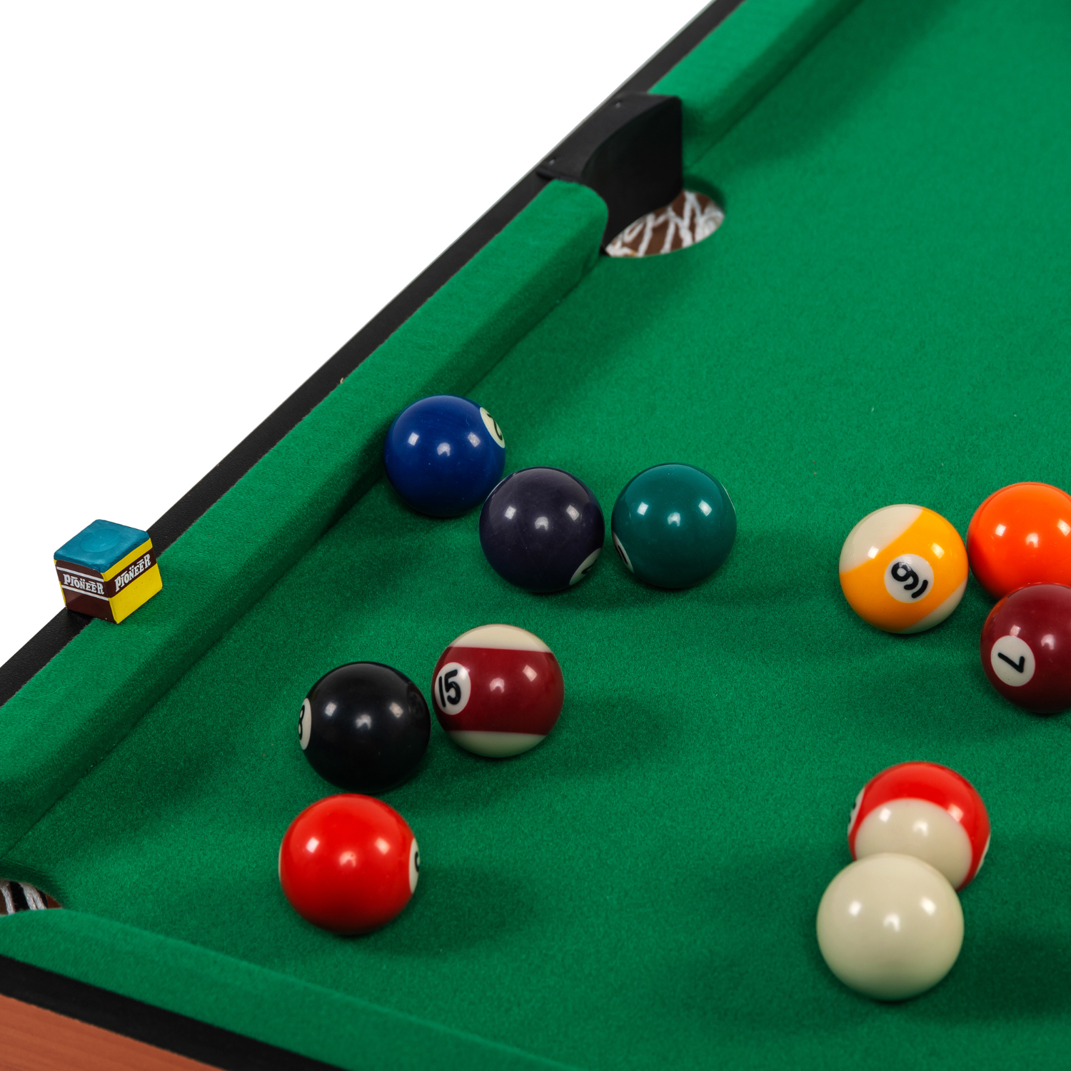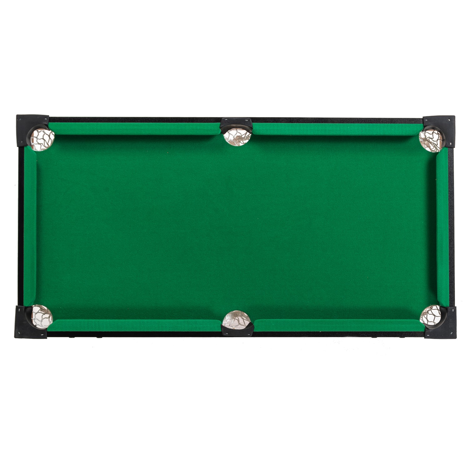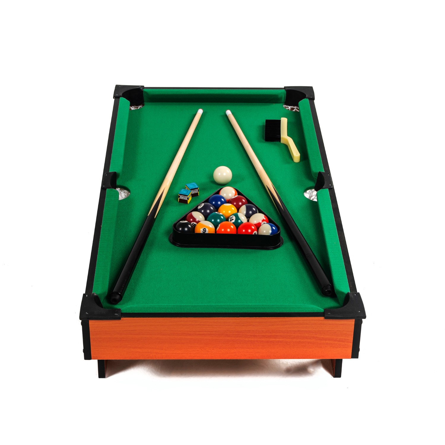 Мини бильярд оснащён небольшими ножками и имеет компактные размеры (91х46х20 см). Благодаря этому, его удобно устанавливать на обычный стол, журнальный столик или любую другую поверхность.
