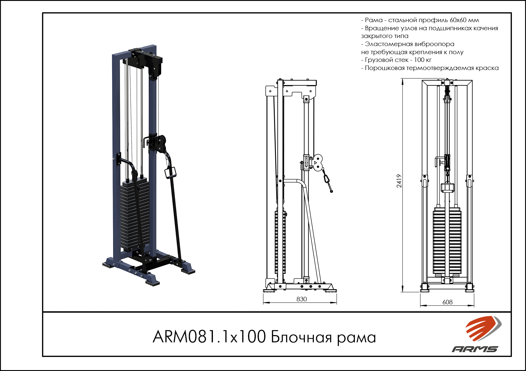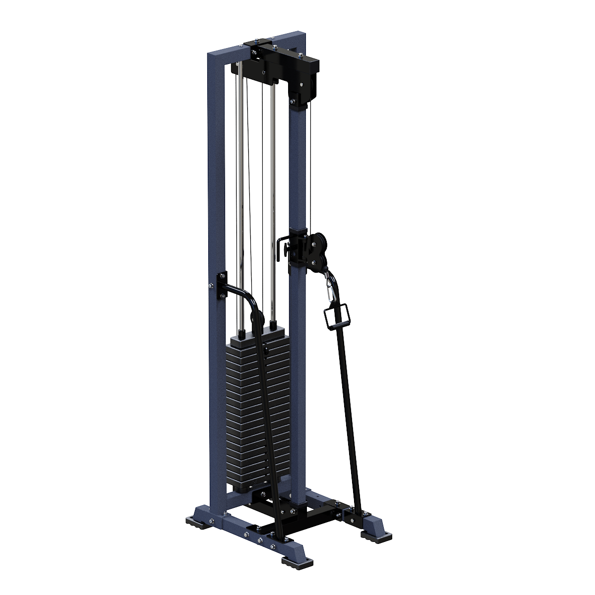 Тренажер Блочная рама предназначен для изолированной проработки грудных мышц, трицепсов, бицепсов, мышц плеч и ног с применение различных блочных ручек.
