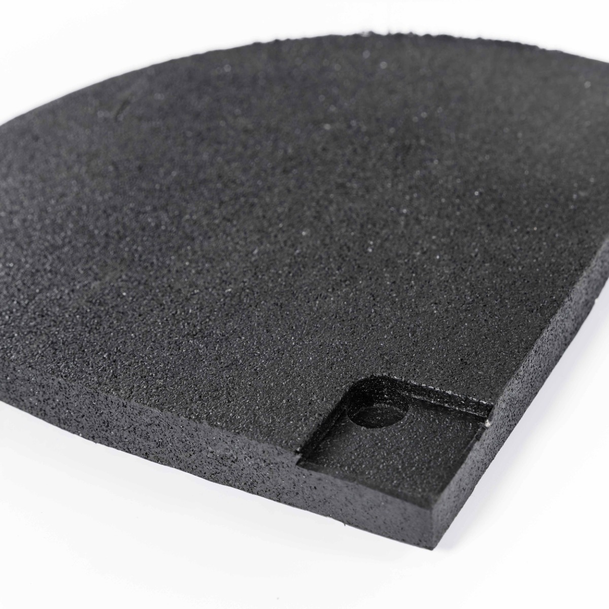 Бордюр угловой толщиной 20 мм предназначен для оформления краевых зон покрытия в местах соединений плитки Sport Plit Premium 20 мм. Скошенный угол формирует плавный переход к полу, обеспечивает безопасность и повышает износостойкость покрытия.