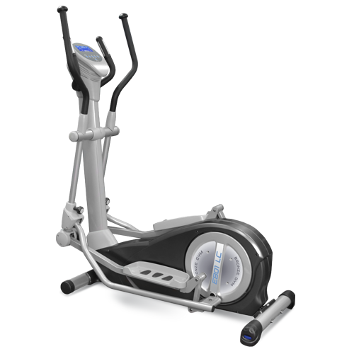 Bronze Gym E801 LC — полупрофессиональный эллипсоид, ориентированный как на клубы со сравнительно невысокой проходимостью, так и на тех домашних пользователей, кто требует от тренировки максимальной эффективности. Электромагнитная приводная система высшего класса (EMS), утяжеленный сбалансированный маховик с инерционным весом 24 кг. и дисковый трехкомпонентный педальный узел обеспечивают великолепный мягкий ход. Угол наклона (и связанная с ним длина шага) регулируется механически в 3-ех положениях, при этом длина шага изменяется в диапазоне от 455 до 530 мм. Такая вариативность позволяет настроить под себя оптимальную длину шага и придать дополнительный акцент нагрузке тех или иных групп мышц. Система нагружения поделена на 16 уровней с широким диапазоном от 10 до 680 Ватт. Навигационная часть представлена многофункциональной голубой LCD консолью диагональю 14 см. с профилем тренировки. В число программ входят 4 предустановленных тренировочных профиля, случайная тренировка, фитнес-тест, 4 пользовательских, 4 пульсозависимых режима (60%/75%/85%/THR), несколько режимов жироанализатора Body Fat (телосложение BodyType, индекс массы тела BMI, индекс метаболизма BMR). Максимальный вес пользователя — 160 кг.