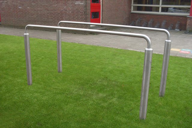 Нержавеющая сталь. Перекладины — Ф42мм, стойки — не менее Ф100мм